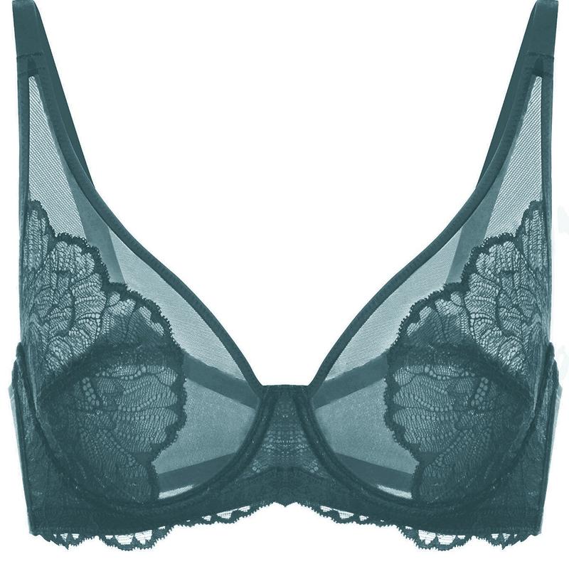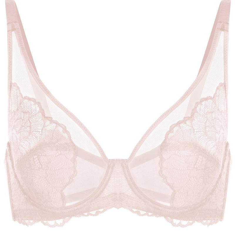 An airy mesh cup with modern, textured lace overlay, providing the perfect support and coverage while feeling light and soft against skin.