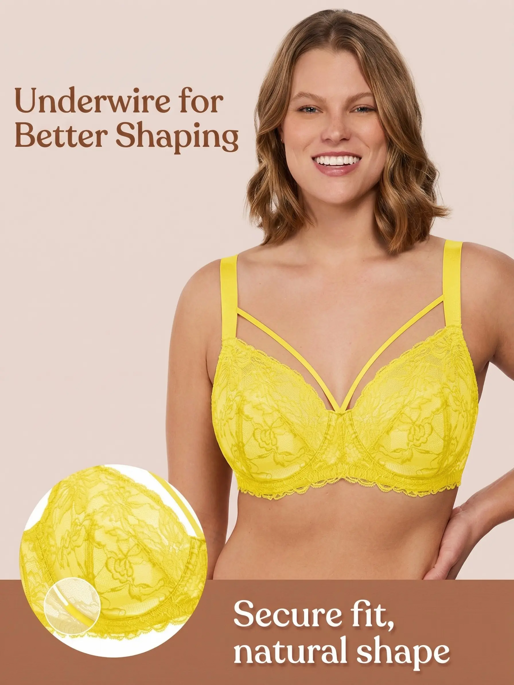 ·Side Support & Lift: Say goodbye to side spillage! The reinforced underwire and inner mesh lining work together to center your bust, preventing outward expansion and providing a natural, lifted shape.