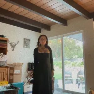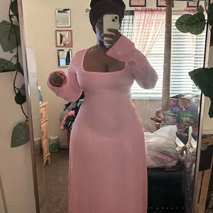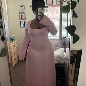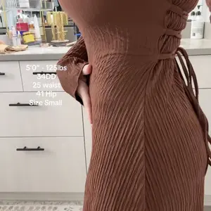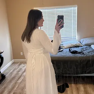 100 out of 10 - this dress is a must have just add to cart AND purchase! flouncy textured material so you don’t see any of your cellulite with a corset tie back and long sleeves and it makes your boobs look amazing… GET IT! 🤎