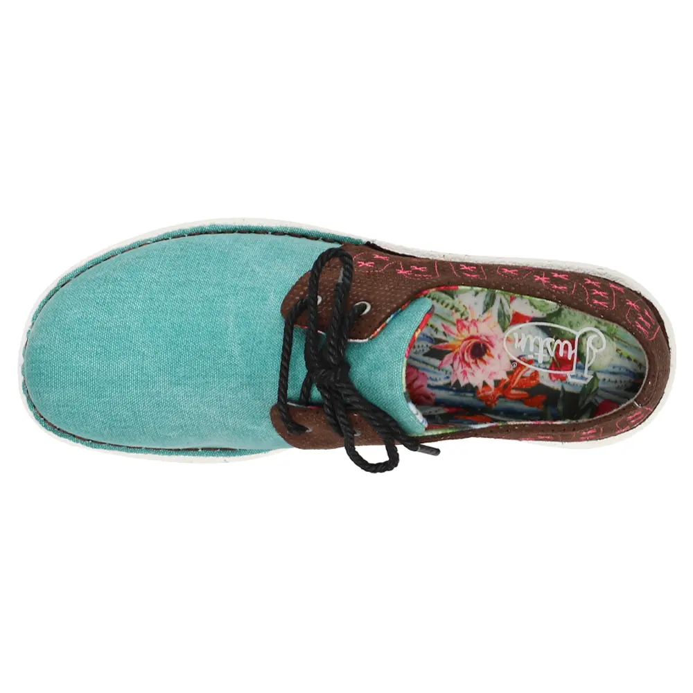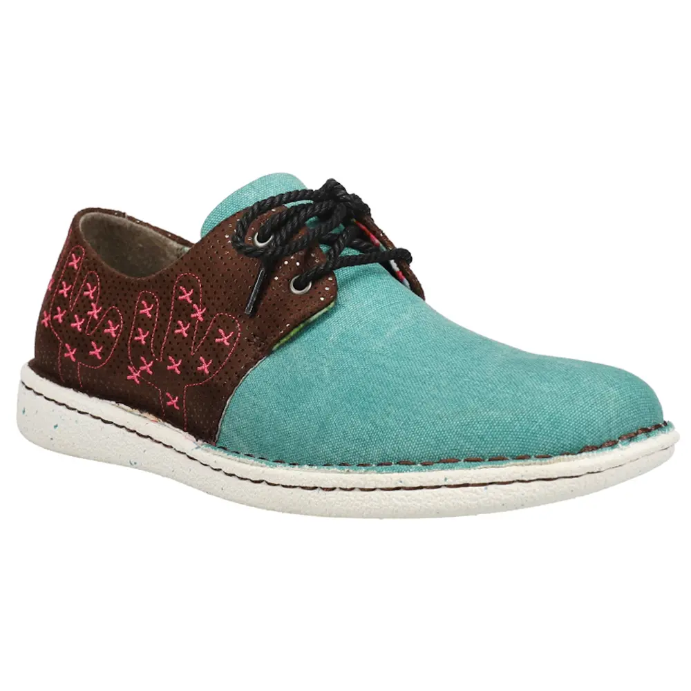 Justin Boots Womens Cac-Tie Embroidered Oxford Flats Casual - Blue, Brown