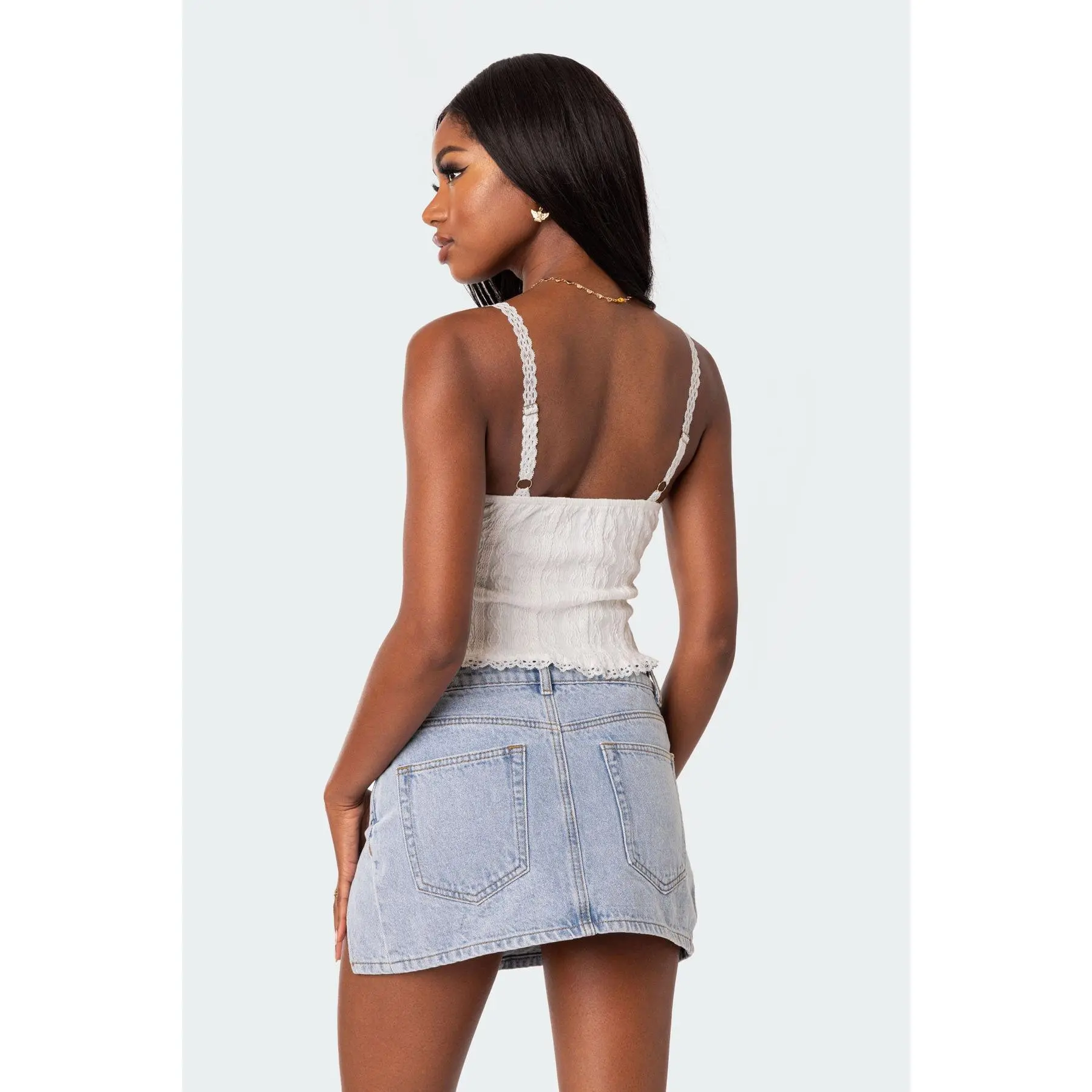 It’s superrr cute I love the lace everywhere and it’s really soft. Love that it has adjustable straps.