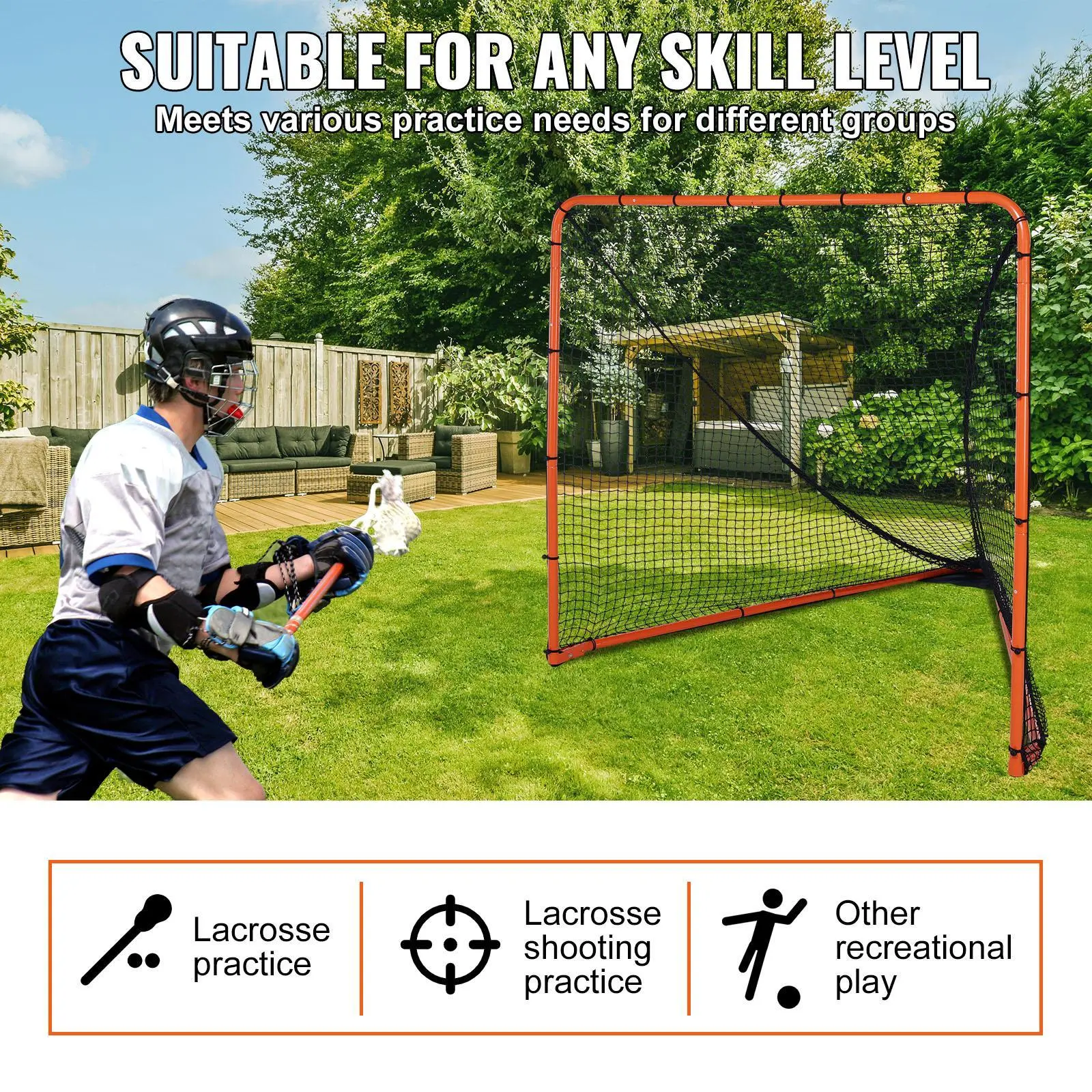 • Versatile: This quick easy setup backyard goal is suitable for all skill levels and can meet the practice needs of different individuals. It is highly suitable for beginners, intermediate, and advanced players for lacrosse practice, shooting drills, and other recreational activities.