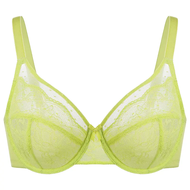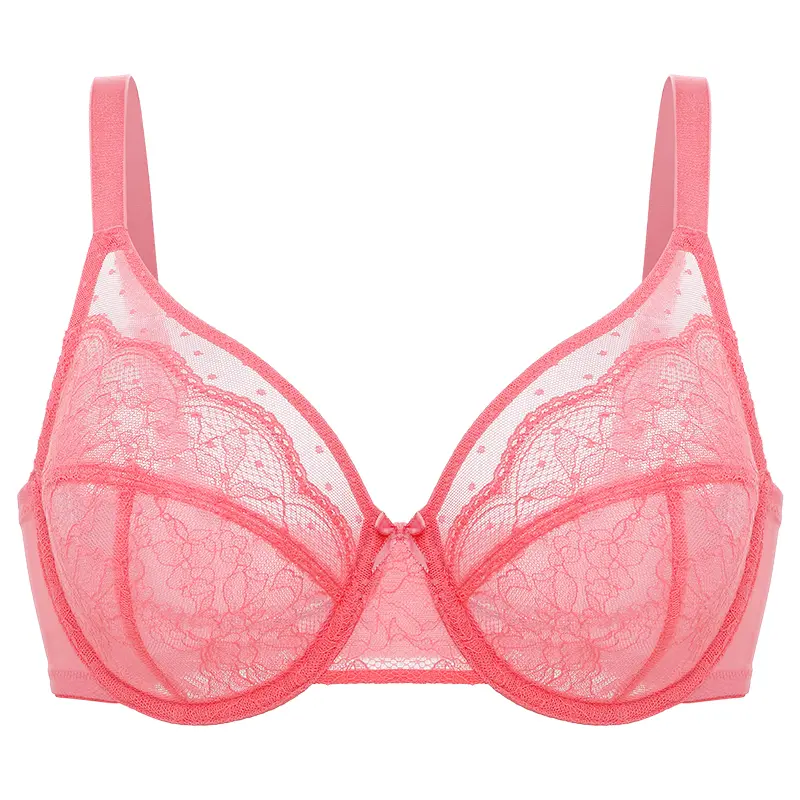 ·Feather-Light Luxury: Airy mesh cups with delicate lace overlay provide full coverage without bulk. Feel barely-there lightness against your skin.