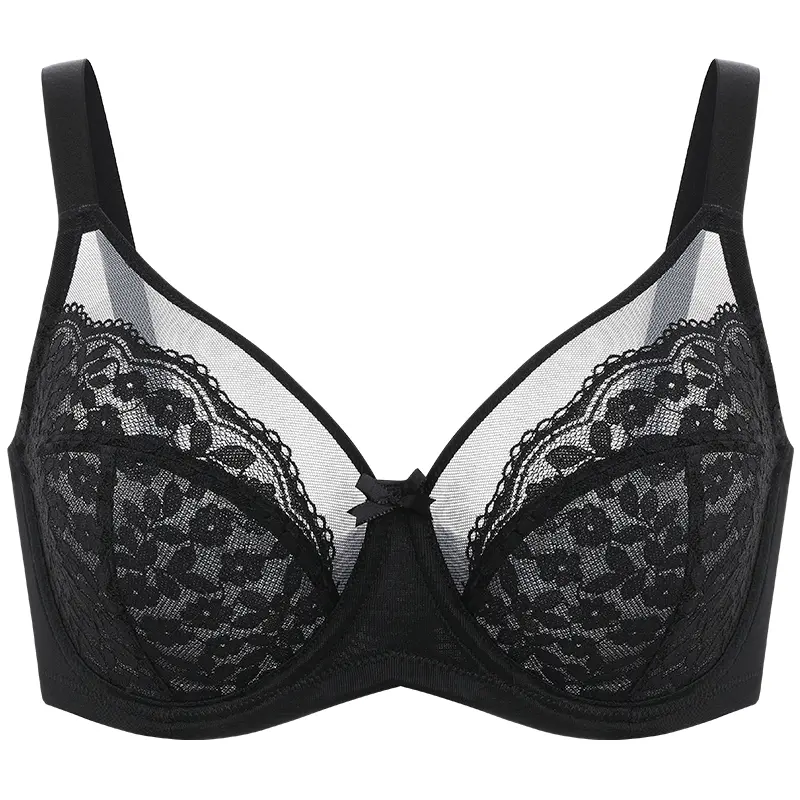 Ā·Feather-Light Luxury: Airy mesh cups with delicate lace overlay provide full coverage without bulk. Feel barely-there lightness against your skin.