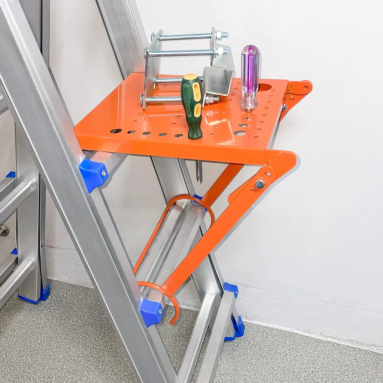 [ Optimized Design ]: Adjustment ladder platform --What's different is that our ladder working platform is adjustable with high compatibility and is suitable for a variety of general ladders. it works little giant ladder and construction ladders too.Also it works A-frame ladders which is a big plus.Orange is beautiful and easy to see