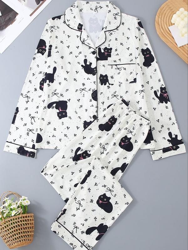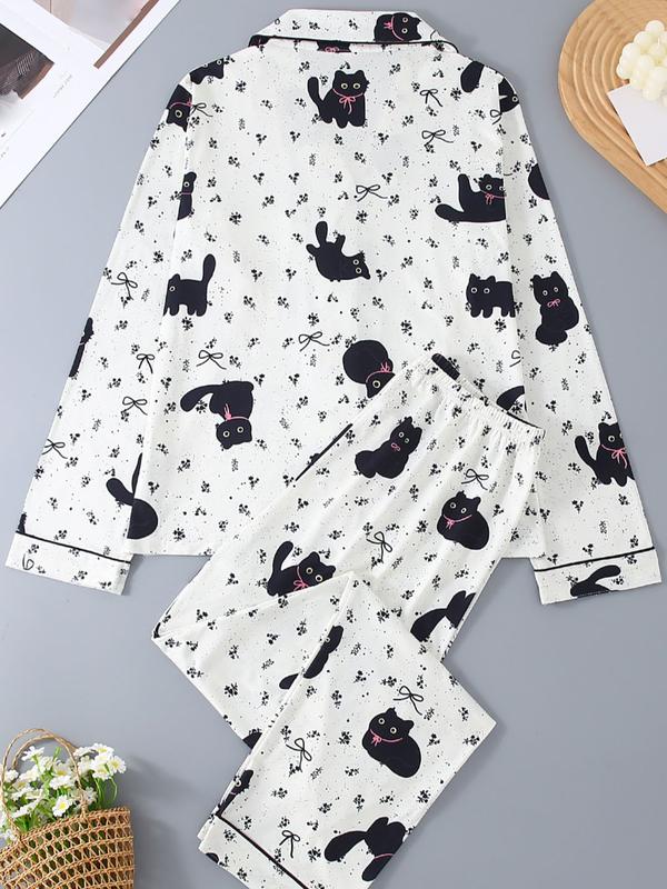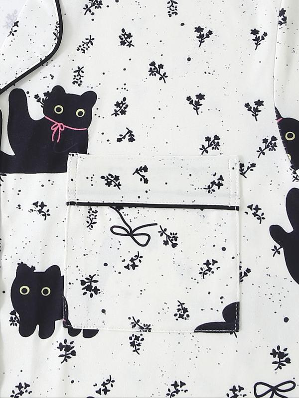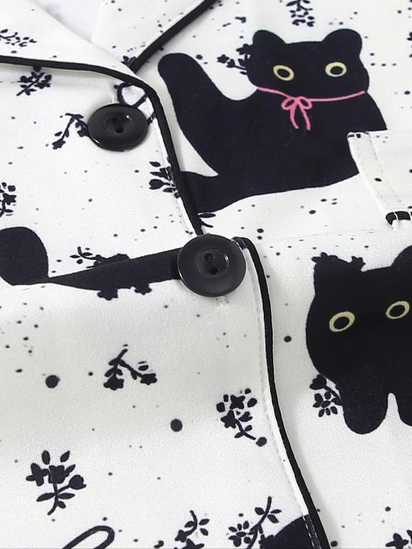 Women’s black cat print pajama set#pajamas #blackcat #tiktokshopholidayhaul #sleepwear #spotlightfinds
