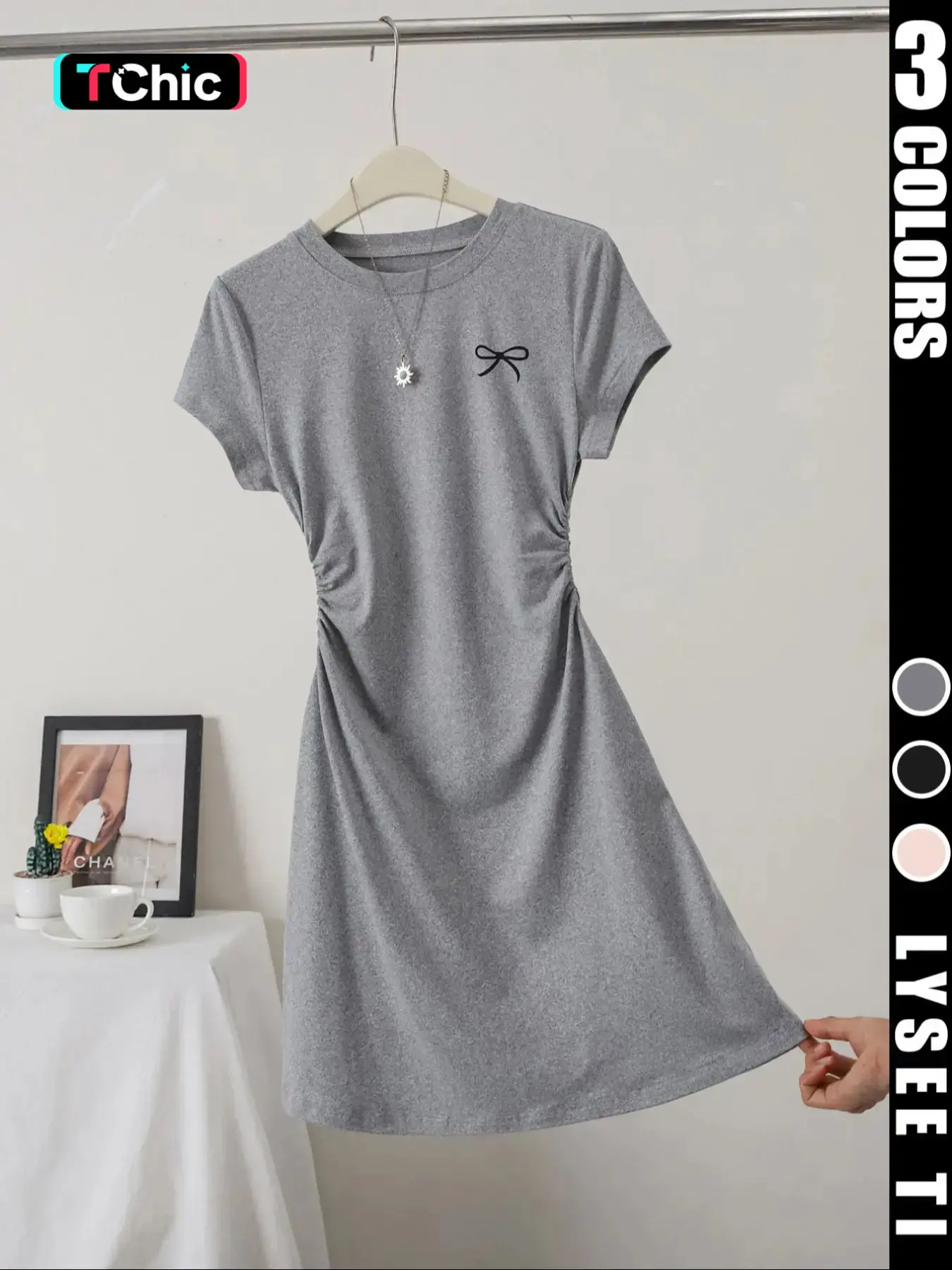 A little bow goes a long way 🎀#Dress #ShortSleeved #comfy #soft #Casual #Fashion #SlimFit #BowPrint #Details #Simple #SolidColor #Pleated #Pullover #RoundNeck #Summer #SummerDress #CasualStyle #PleatedDress #OOTD #SummerOOTD #TikTokFashion #dealforyoudays