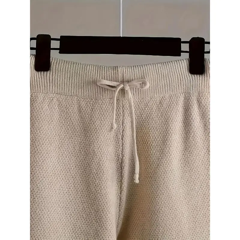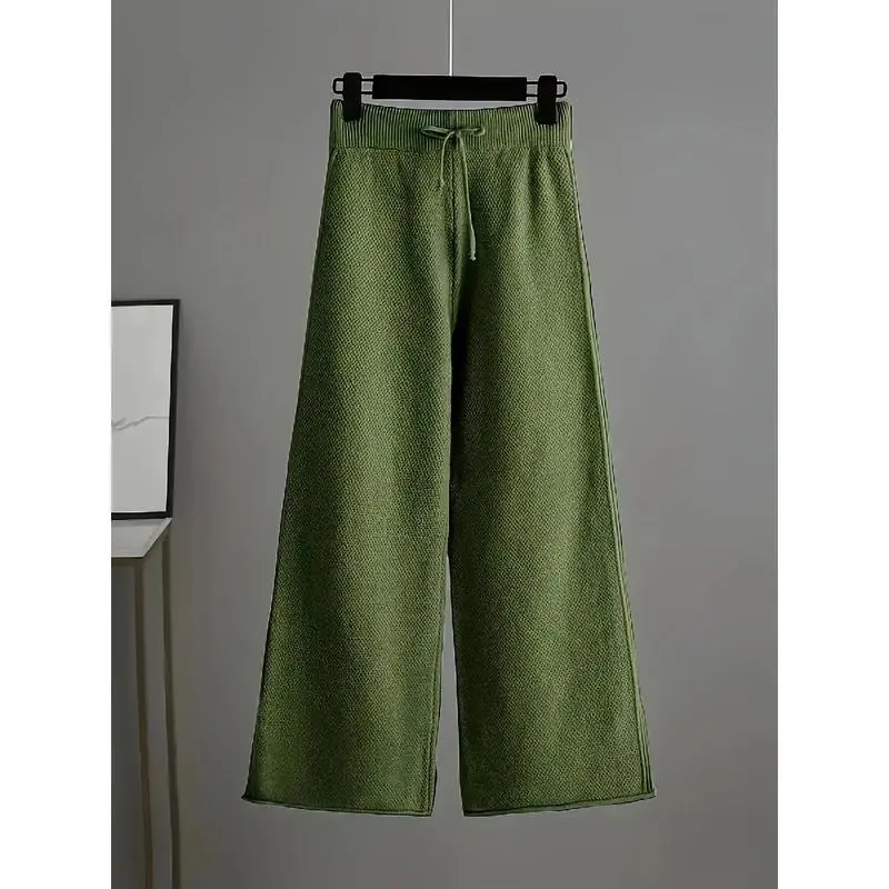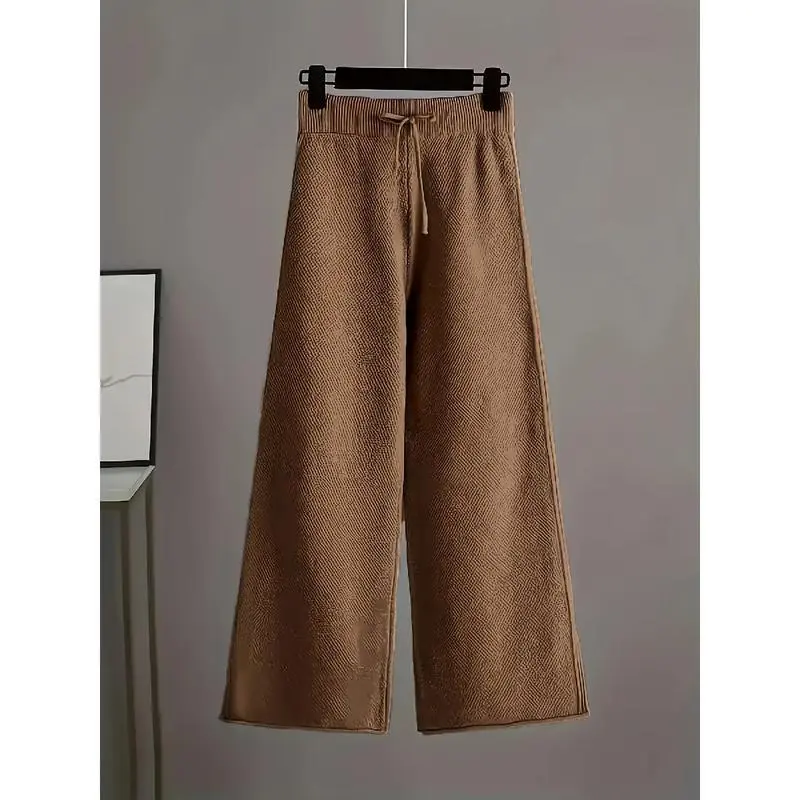 5. Ladies' Early Autumn New Sweater Fashion Two-piece Set: Unique Pattern Round Neck Drop Shoulder Long Sleeve Pullover + Straight Wide Leg Pants Combination, Loose And Casual SeriesGift