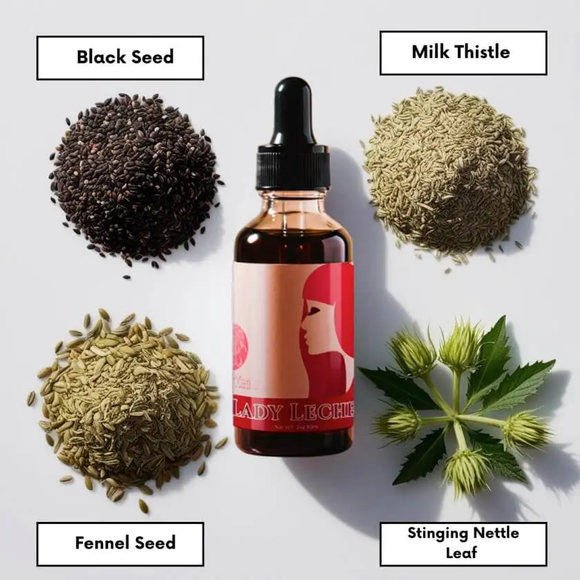 ·Milk Thistle: Helps increase milk production, stimulate mammary growth, and supports thyroid function.