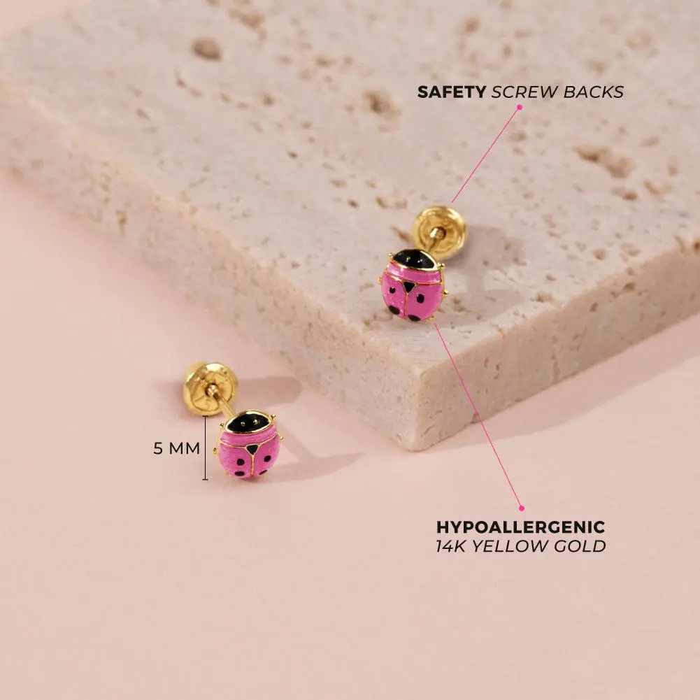 We have purchased several screw back earrings from other stores and the backings are just not great quality which have resulted in many lost earrings. These adorable ladybug earrings are perfect! They are high quality for my daughter’s sensitive ears and a great price. The backings hold them in well and after several weeks of rough play, beach days, and swimming, they are still nice and snug!