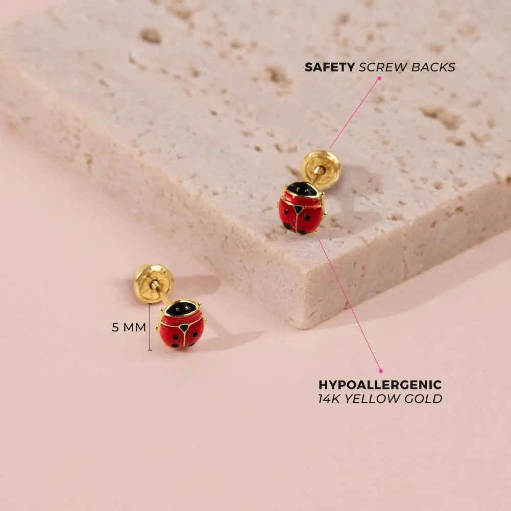 Love the tiny ladybug earrings. Was looking for a pair of earrings to replace my 4y old's baby earrings and these are just right. She loves ladybugs and was so excited to wear these. They are pretty tiny but so adorable on her and perfect for her 4y old ears! The screw back is essential.
