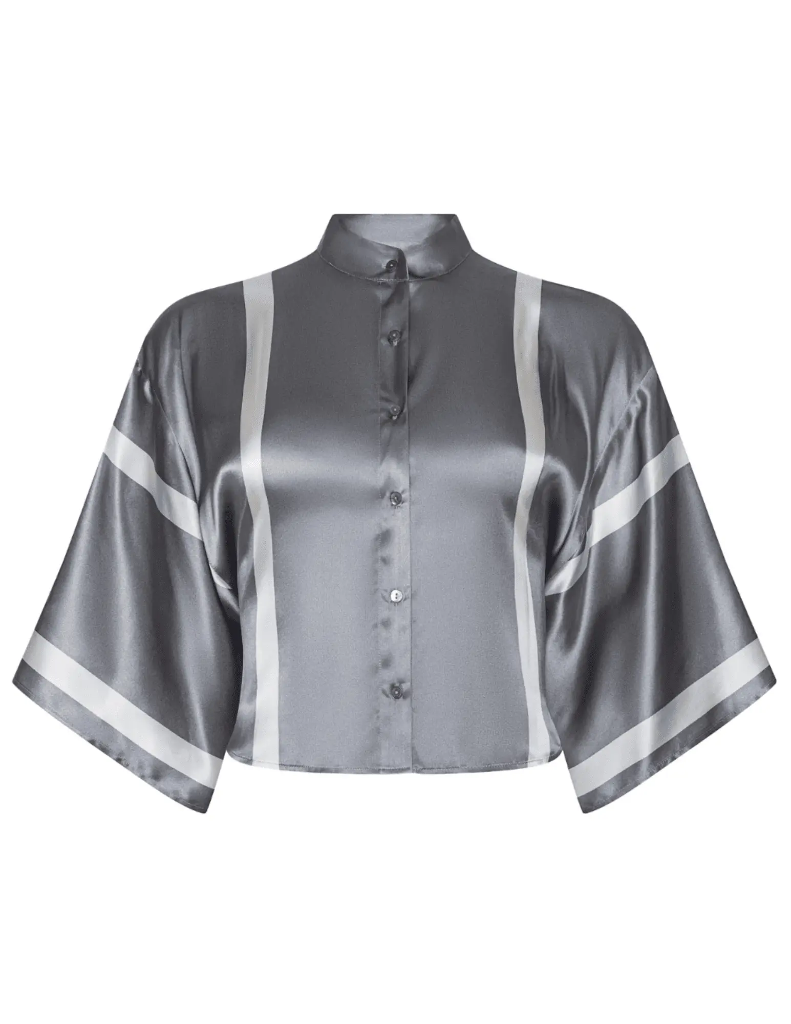 Crafted from 100% silk, the Dru blouse drapes beautifully while maintaining a structured, boxy fit. The cropped length pairs perfectly with high-waisted trousers, skirts, or denim, making it a versatile piece for both work and weekend wear. Finished with a button-front closure, this blouse balances modern ease with timeless tailoring.