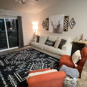 Just unboxed my 5×7 rug and I absolutely love it! It's exactly as pictured, the shipping was quick, it is super soft and feels durable... I guess I will put that to the test with my 5 kiddos and 2 dogs 😂, but so far I am very pleased with my purchase!