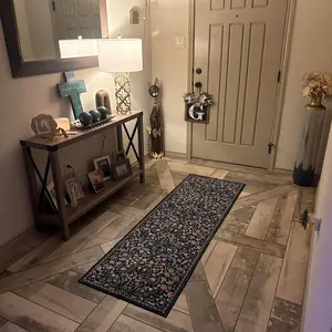 I absolutely love this rug. It goes perfect with my decor and is so soft. I needed a thinner rug in the e area so that my benches would slide better and this is perfect for that!!!