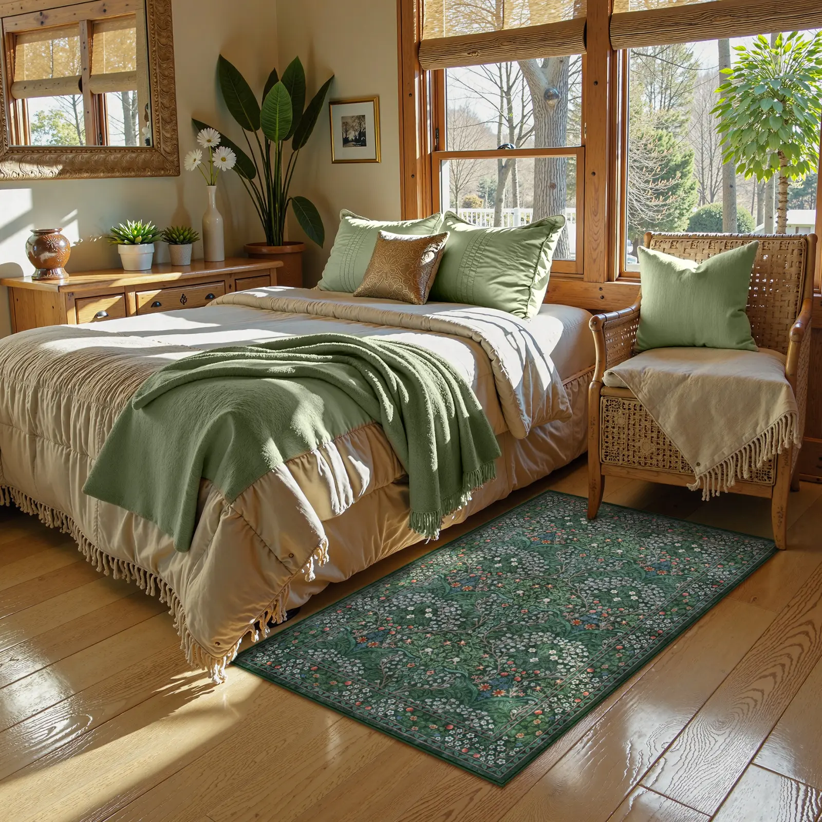 Wild Bloom Dark Green, 5‘x 7’