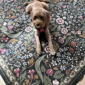 Definitely not worth the price. Issues with design out of the package. Print is just sprayed on top of the rug which isn’t even the base color. Think vacuuming might perk up the pile, think again. Don’t even try. My 12 yo ruggable looks better than this rug.