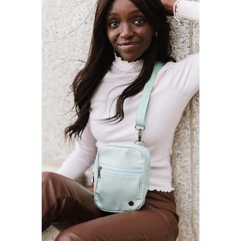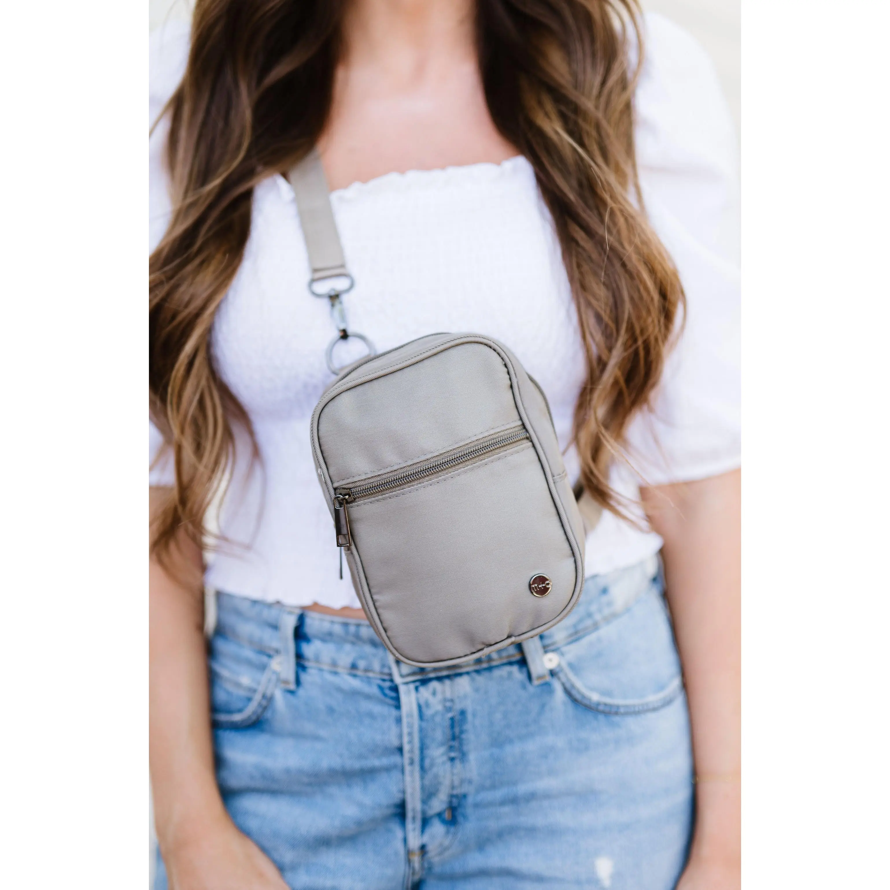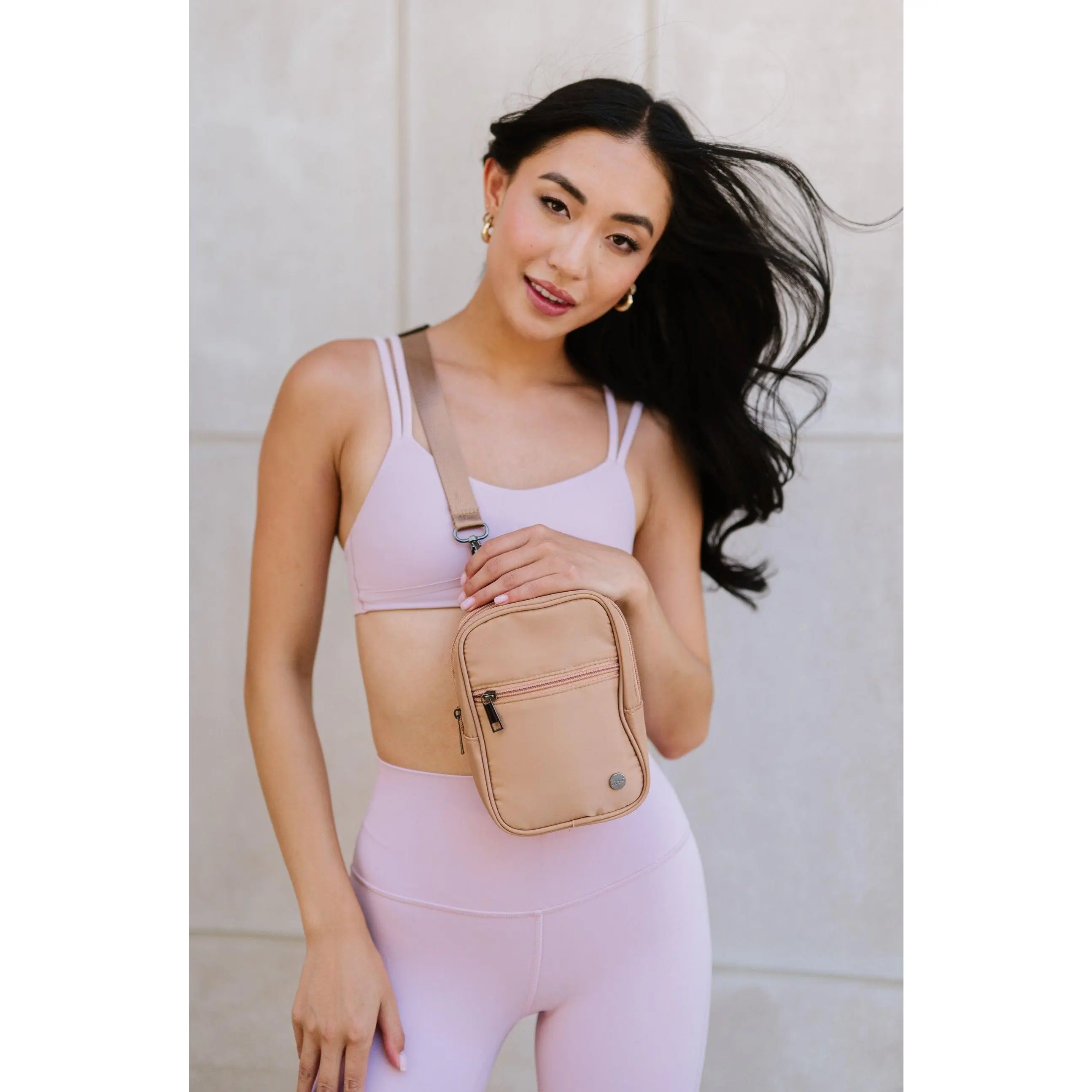 It's a great neutral color that can match with any outfit! I love that it can carry my essentials and provide the lightweight feel of a fanny pack.
