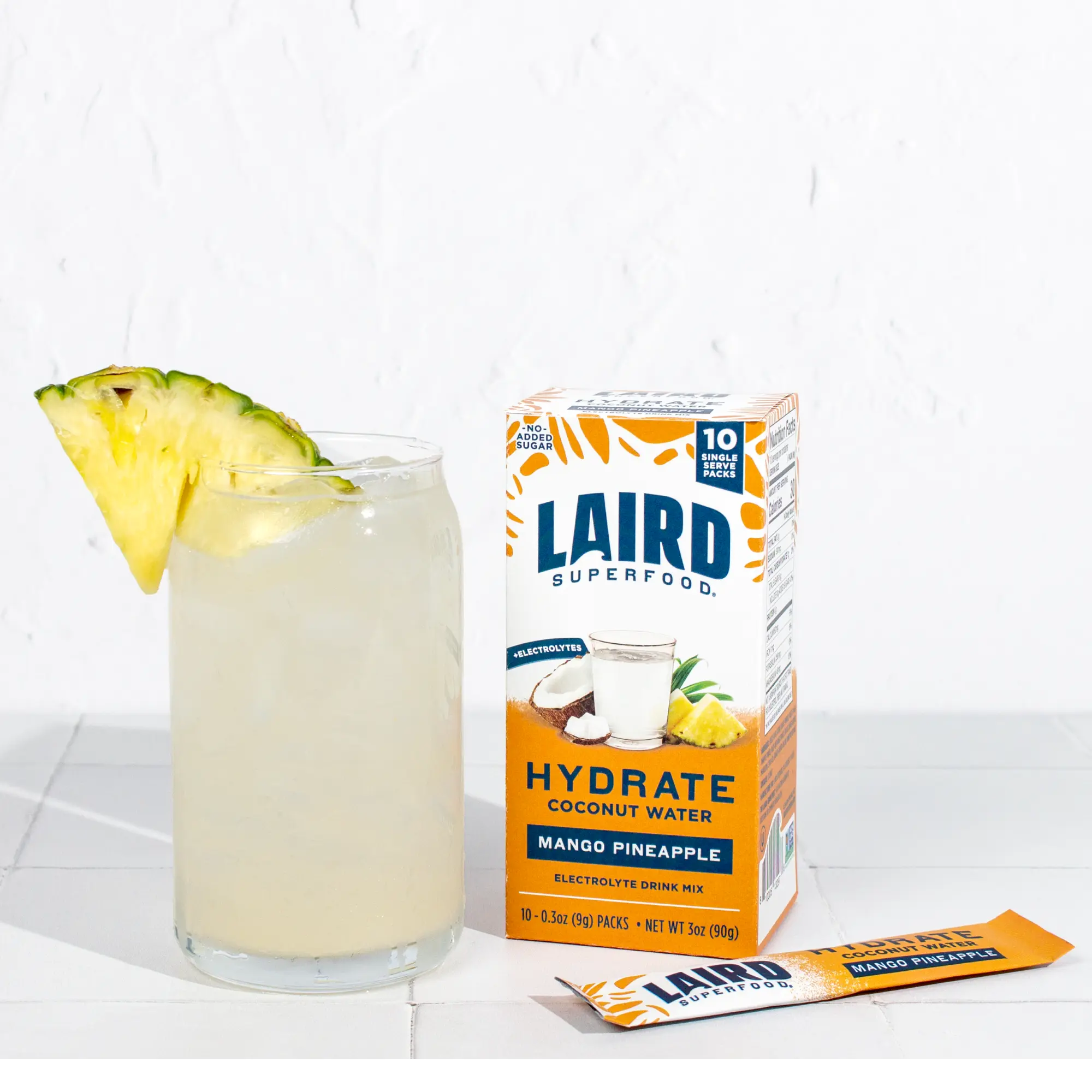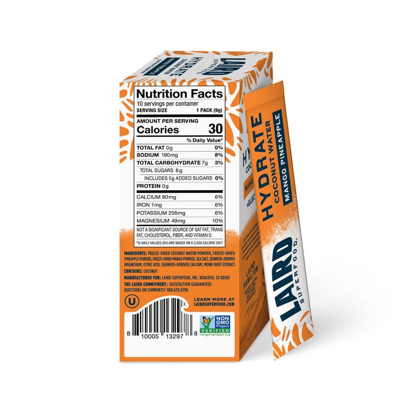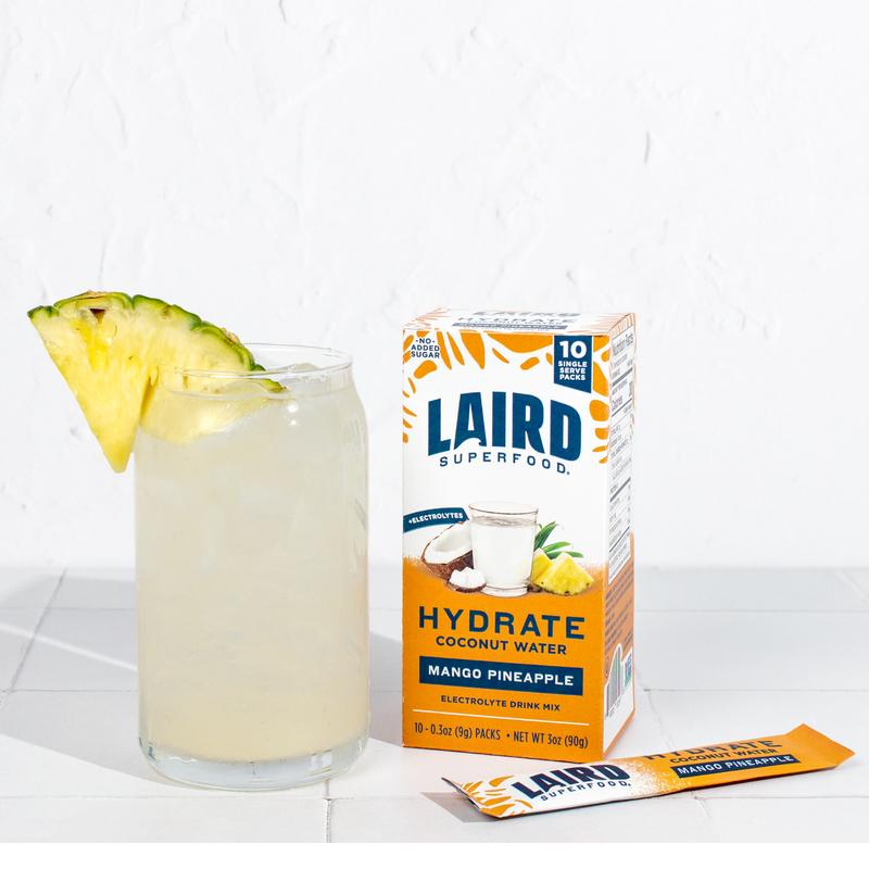 Laird Superfood Hydrate Pineapple Mango Electrolyte Drink Mix 10 Single Sticks Natural Nourishing Hydration