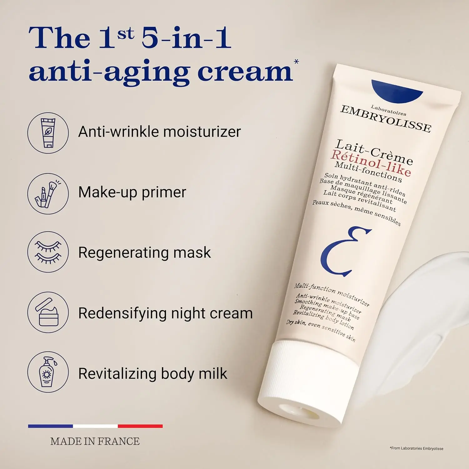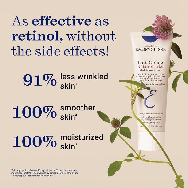 At the heart of the Lait-Crème Retinol-Like formula, we find the secret shared by all Embryolisse Lait-Crème moisturizers: a lipid core to hydrate, nourish, and protect all skin types. With its milky, creamy, and rich texture and the delicate floral fragrance signature of Lait-Crème, it offers comfort and protection to dry skin, even the most sensitive.