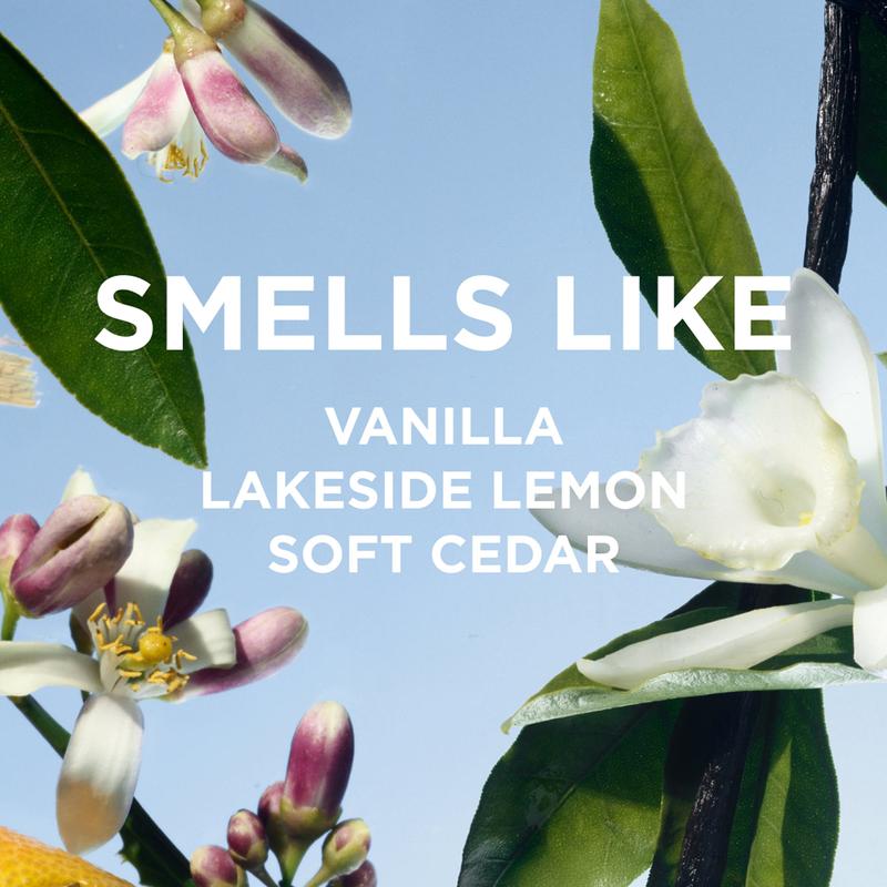 Lake has become my go-to for that necessary refresh. It's a comforting pop of bright citruses, crisp woods and warm vanilla. A perfectly relaxing and casual vibe that I happily wear everywhere; and it's my favorite on road trips.