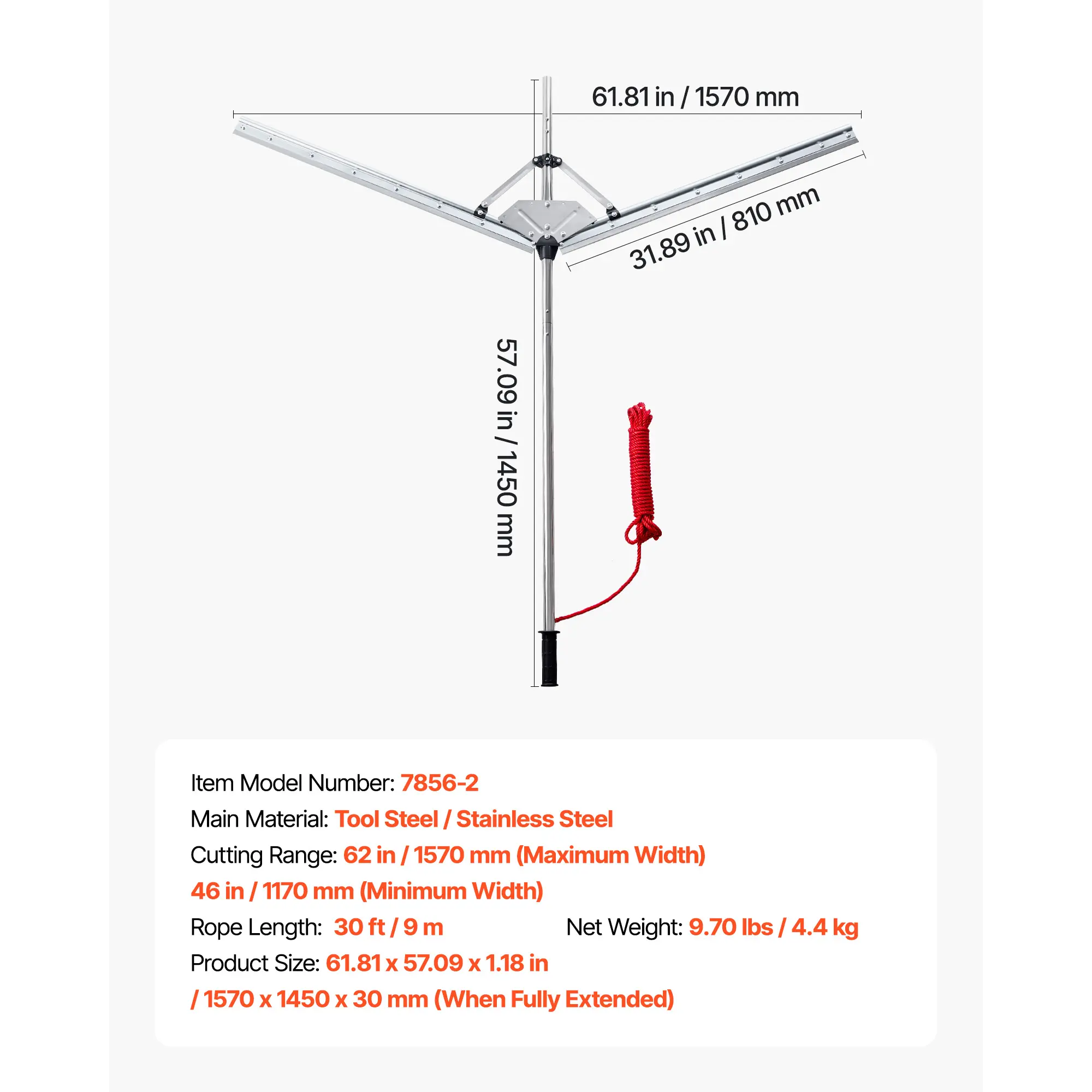 • Adjustable Width: The aquatic weed rake features snap-button adjustable 2 cutting widths (max 62 in, min 46 in), making it ideal for various weed densities. The sharp 2 mm tool steel blades cut cattails and lilies easily, restoring clean water areas.