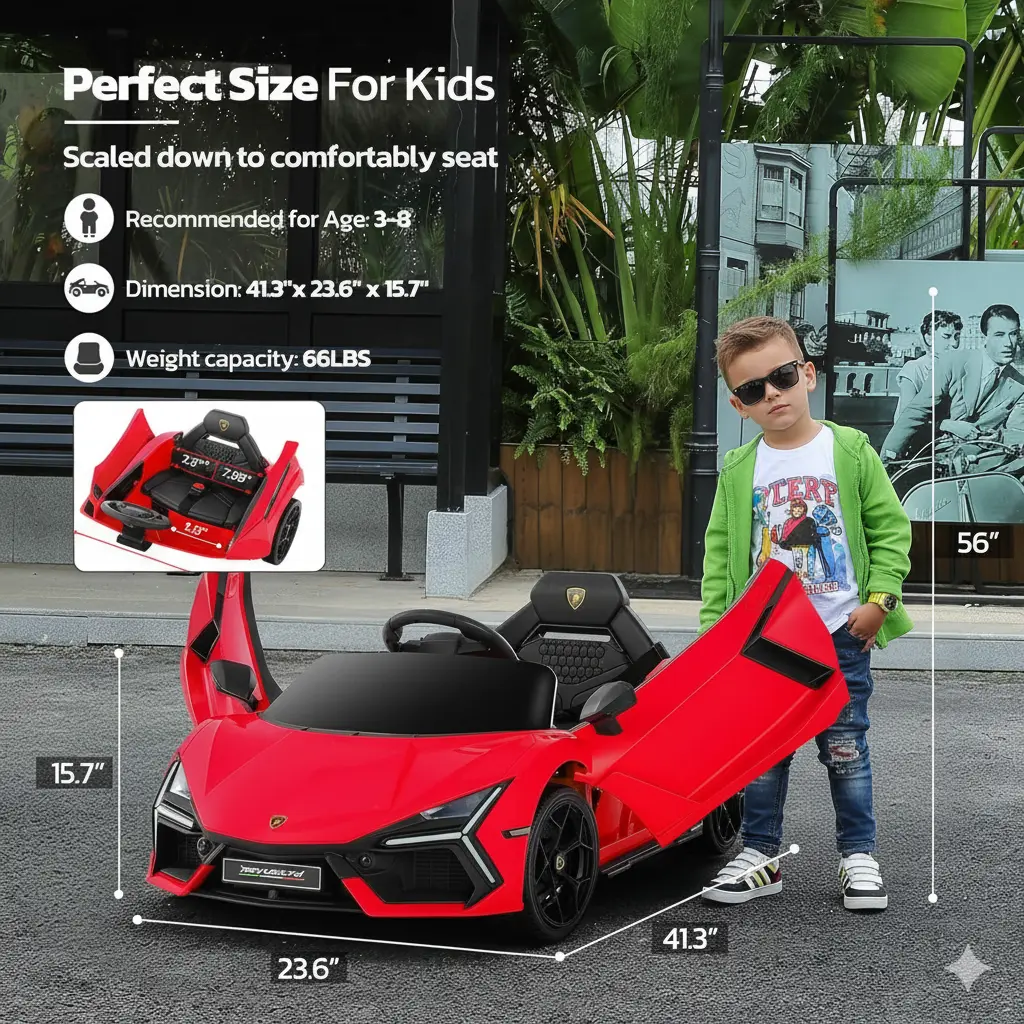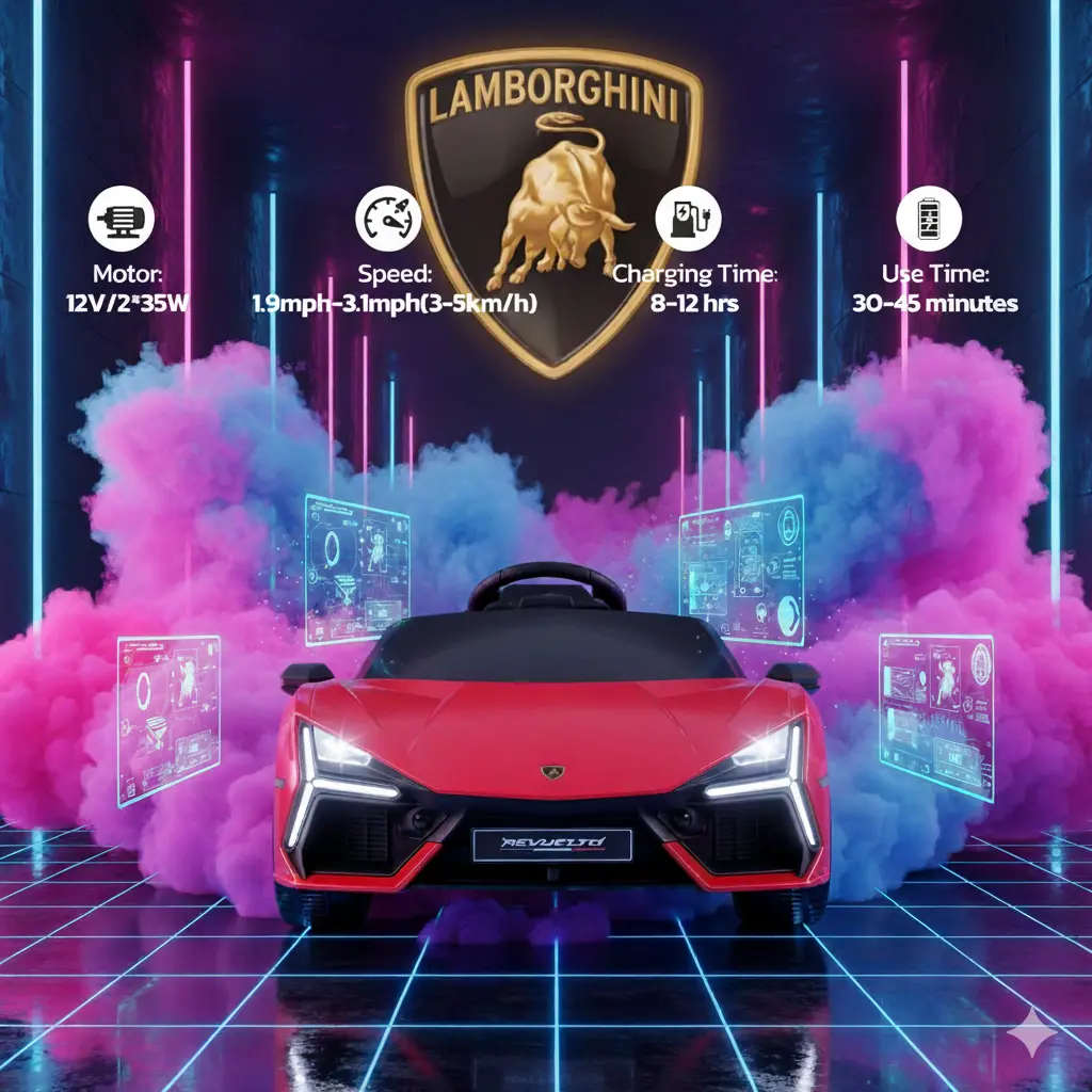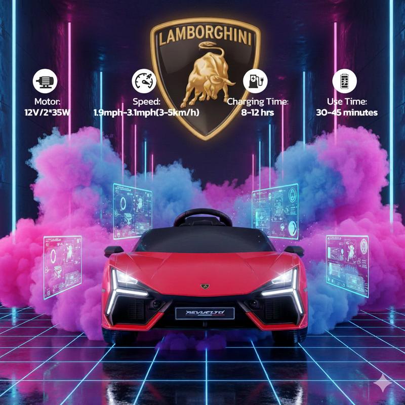 - Design: Mimics real Lamborghini's sleek and slim design, with an elegant aerodynamic body.