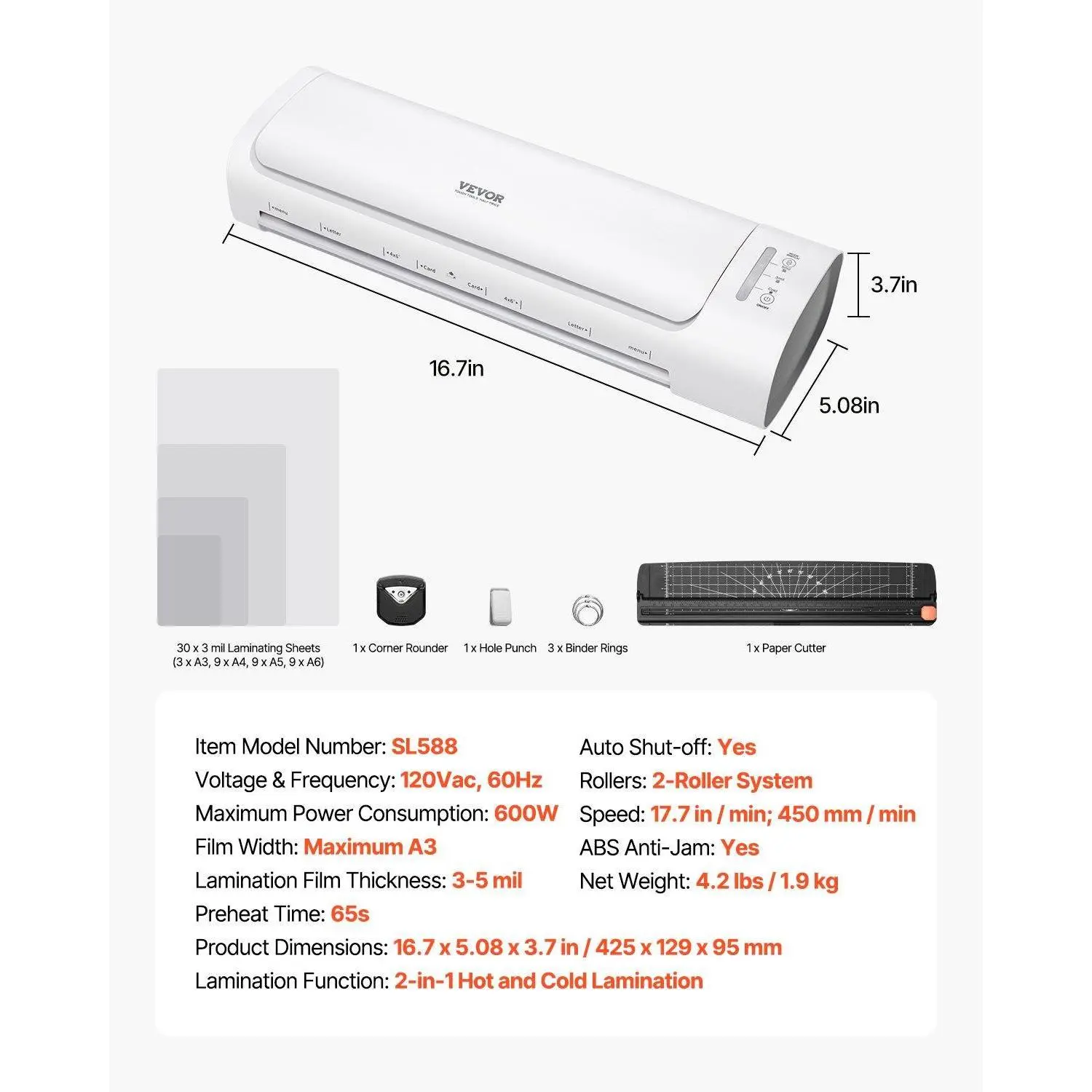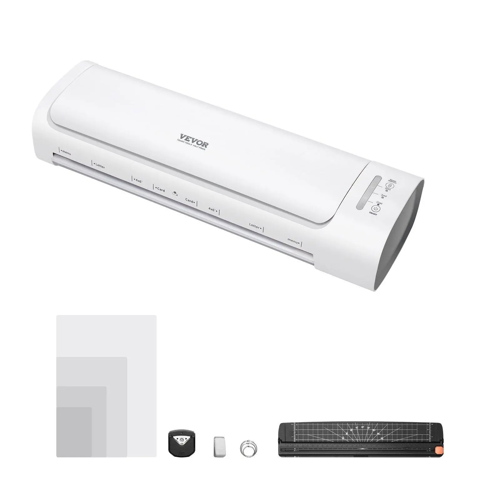 ·Complete Accessory Set: This laminator machine comes with everything you need—laminating sheets, a corner rounder, hole punch, document rings, and a paper cutter. Whether for personal use at home or professional office laminating, it’s ready to tackle all your needs. Plus, it’s compact and easy to store, so it won’t take up much space when not in use.