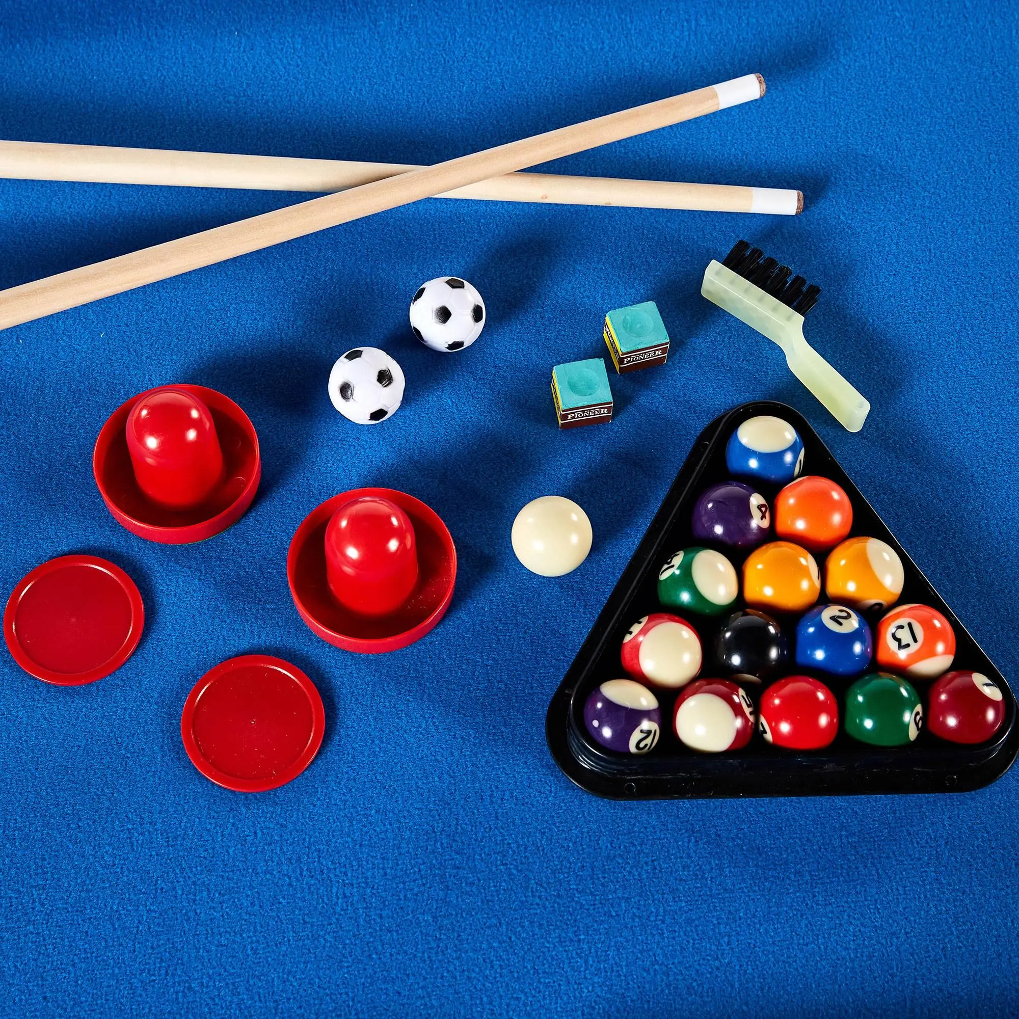 Whether you're a pool shark, a slide hockey hero, or a foosball fanatic, you'll find what you're looking for with the Lancaster 3 in 1 48 Inch Combination Game Table.This convertible game table features all of your favorite games in a single table, saving you space without compromising fun. Switch from 1 game to the next in seconds, with the easy to convert tabletops. A manual scoring system will help you keep track of wins and losses while you battle your friends and family in billiards, slide hockey, or foosball. The table features built in storage to keep all of the game essentials out of the way when not in use. Billiard balls, cues, foosballs, hockey pucks, and hockey mallets are included.This 3 in 1 arcade game table features something for everyone in the family. Get ready to test your game skills with the Lancaster 3 in 1 48 Inch Game Table.