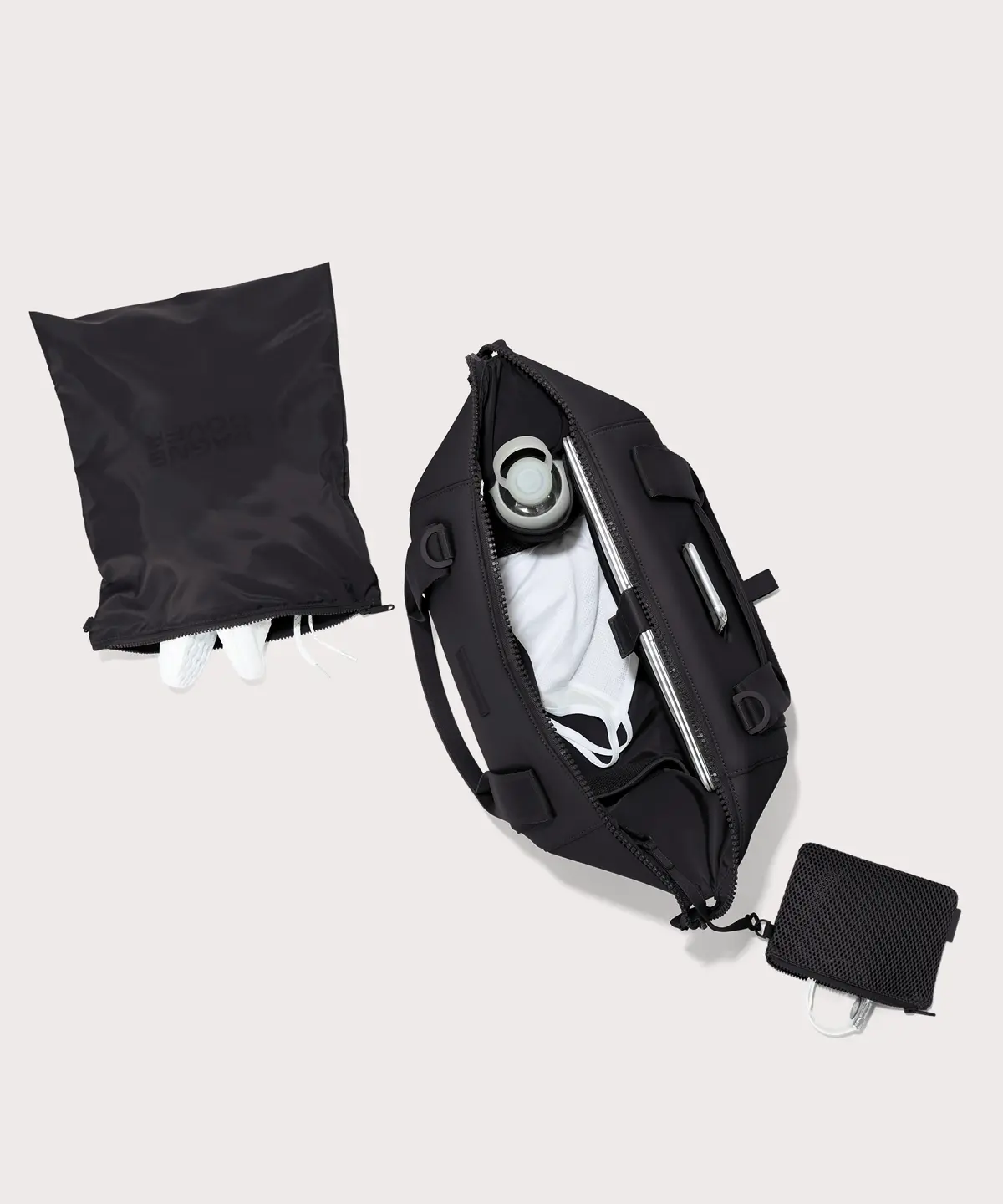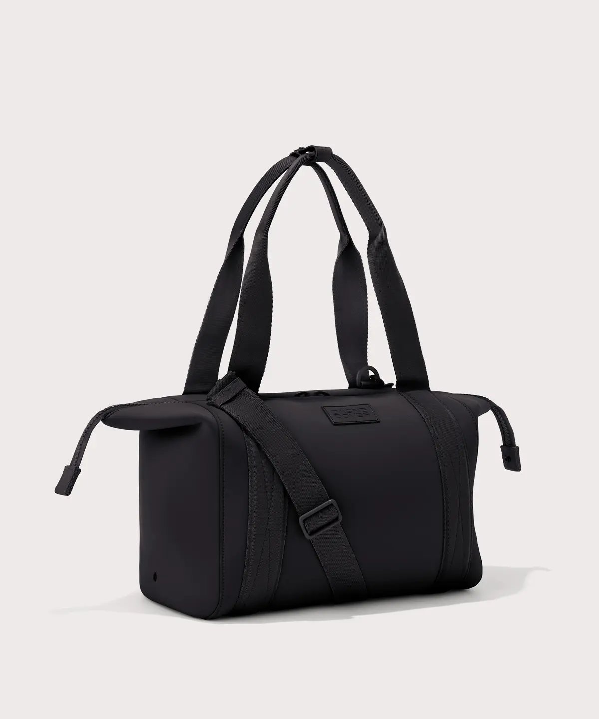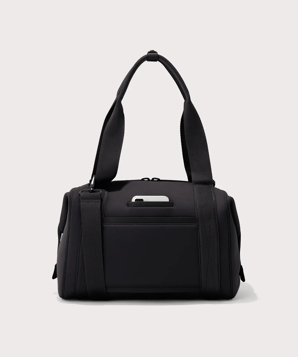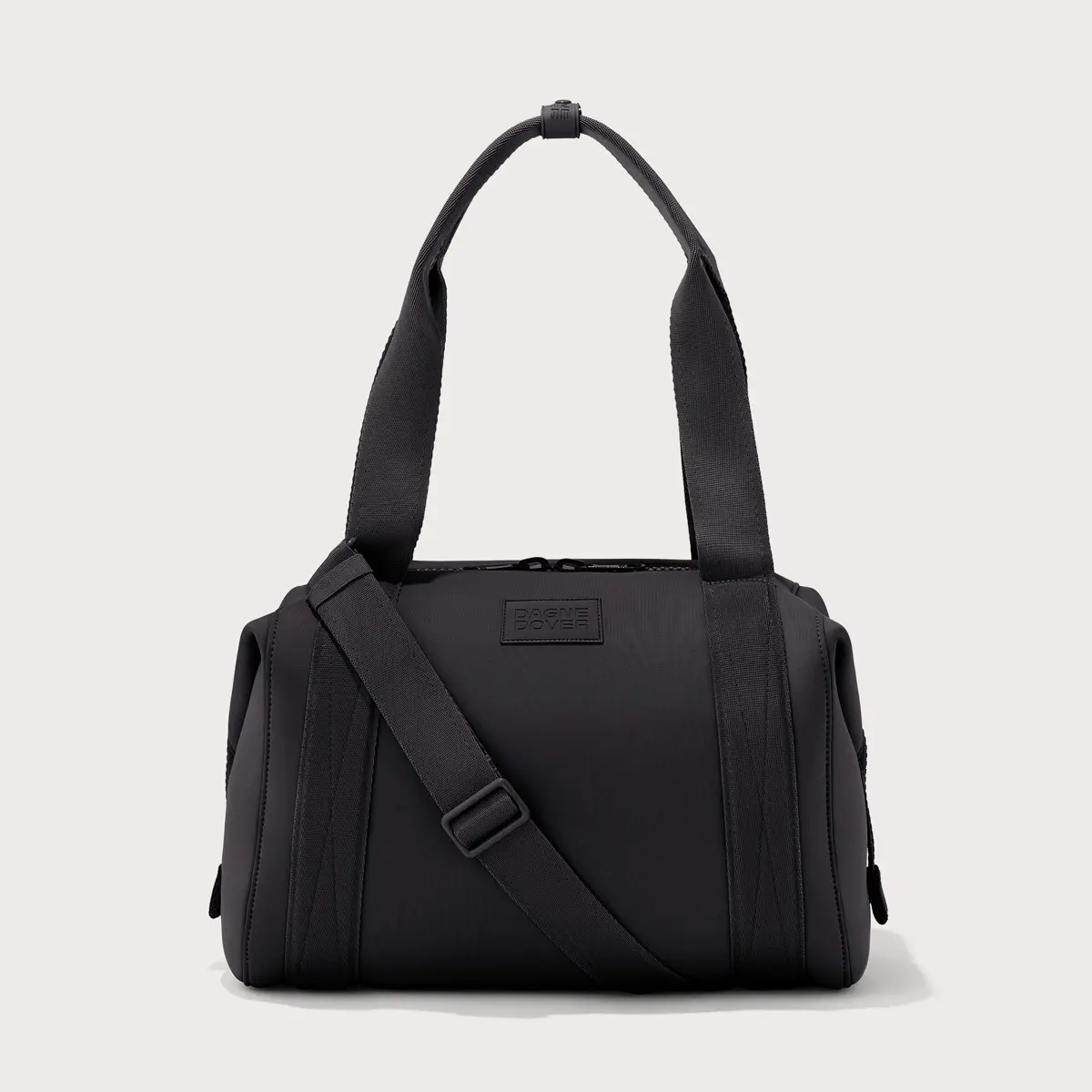 The perfect antidote to the office-to-gym dilemma, our medium Landon Carryall duffle bag provides ample room for a pair of shoes and full change of clothes for the best all-in-one gym bag. The padded laptop sleeve keeps you from needing a secondary bag, while the shoe duster, air mesh pouch and protective water bottle pocket ensure your belongings wont jostle or spill while in transit. Like the small and large Landon, the medium offers two sizes in one by transforming with a simple snap. A detachable cross-body strap means more ways to carry, whether youre headed to boot camp, yoga or a bike ride outdoors. Organization features include a stretch key leash, interior side pockets for tech accessories and on the exterior, a covert back pocket so your phone is never out of reach.We use 100% premium neoprene, a high-tech fabric that is hand washable and quick to dry. Its insulating and shock-absorbent thanks to the material makeup. A modern material for modern needs, the durability and versatility are endless.