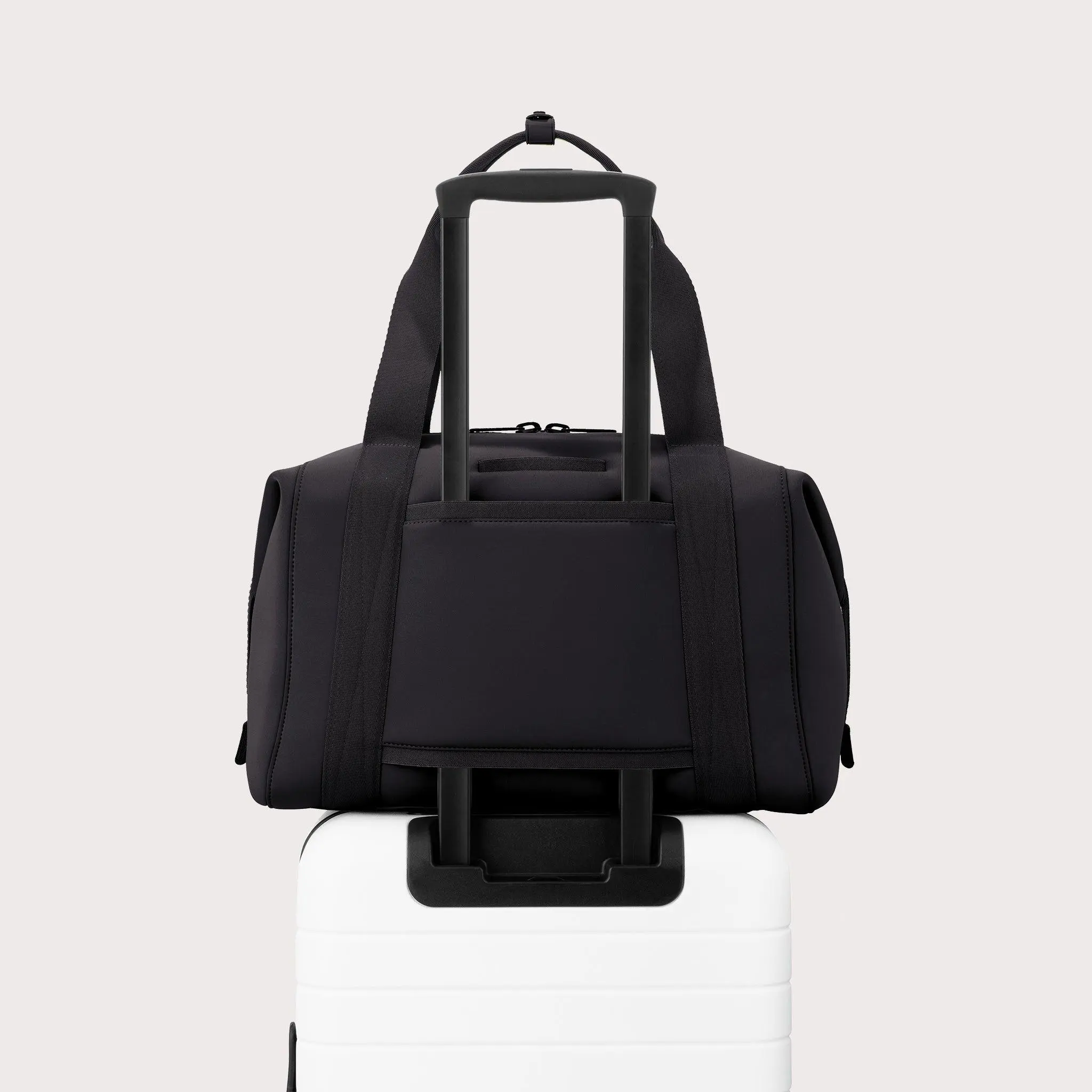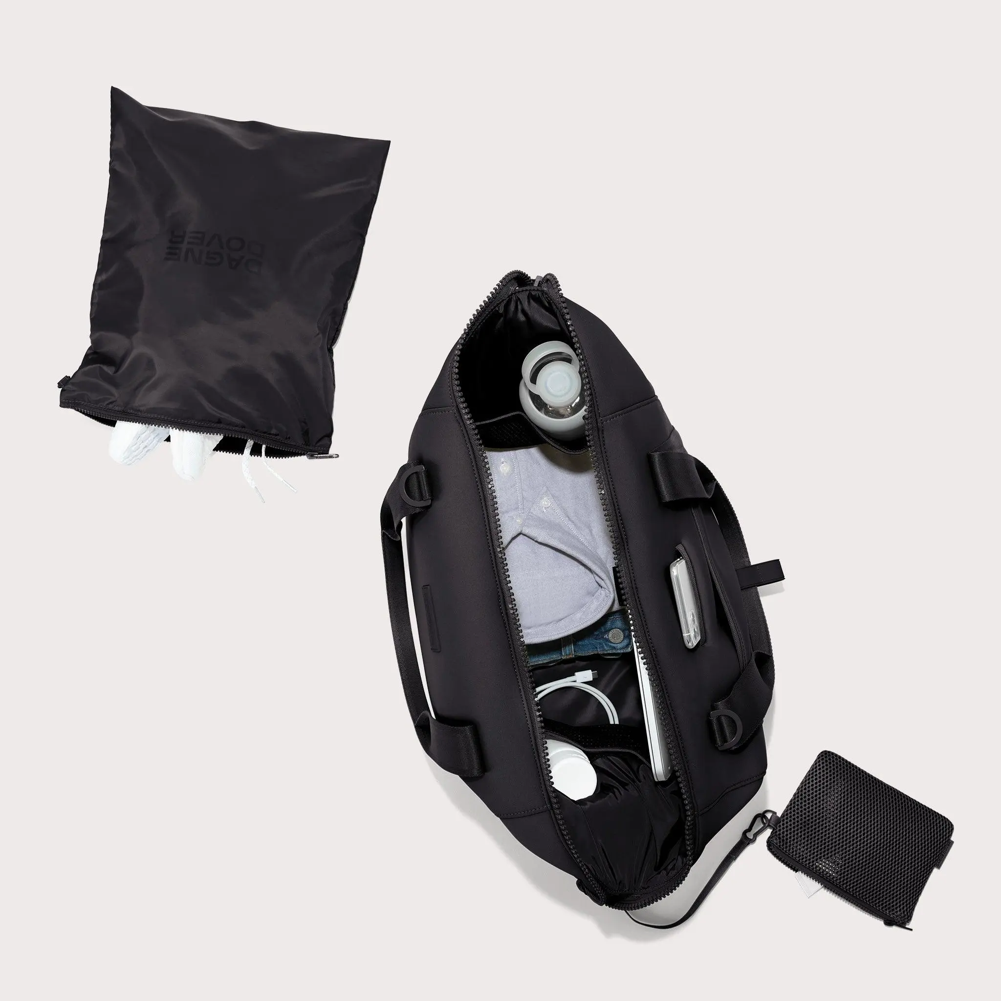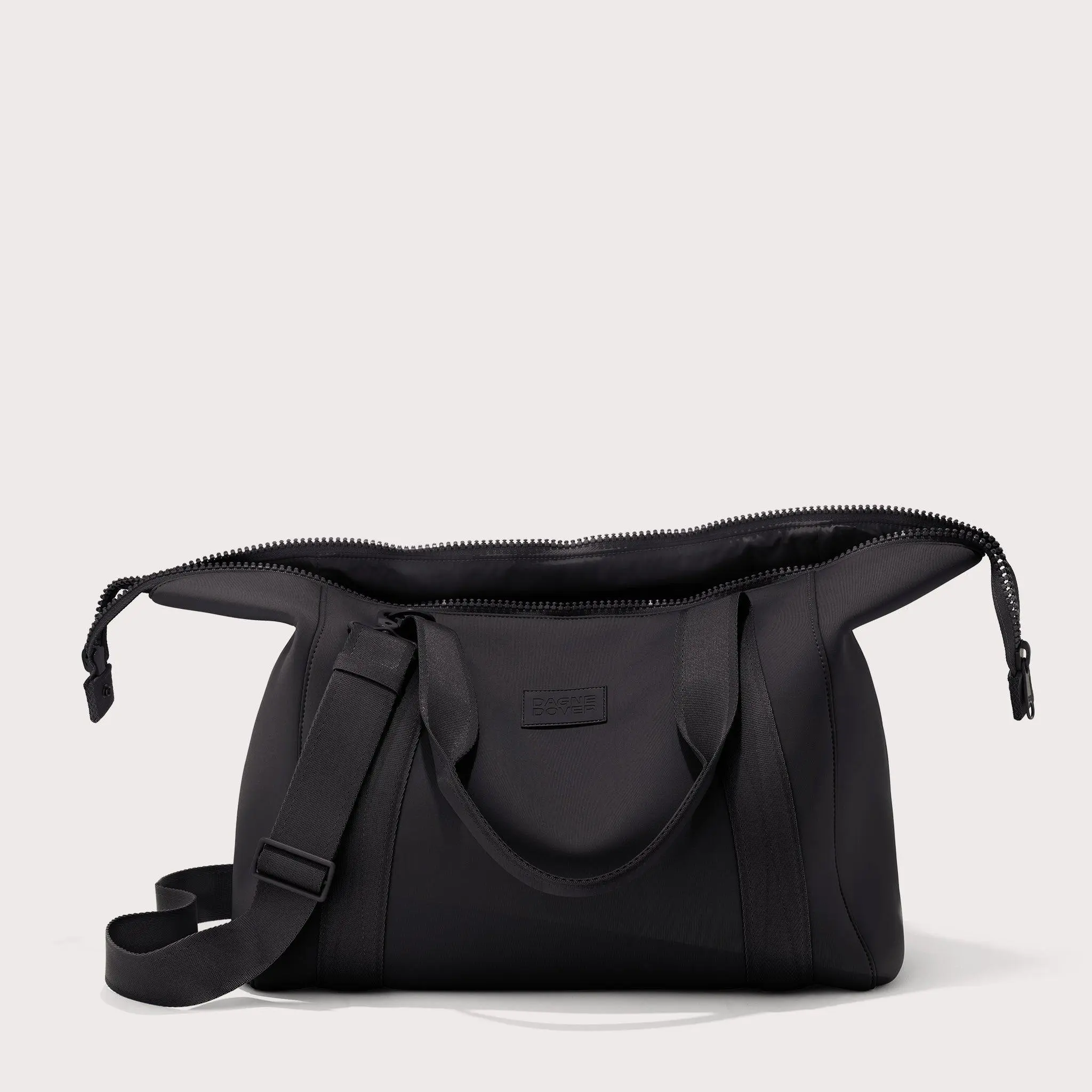 The weekend is nigh and youre ready for a much-needed getaway. Whether youre off to commune with nature in a cabin by the woods or jetting to Paris for a stylish urban excursion, our large Landon Carryall has you covered. This lightweight bag is designed to support you on any journey, modest or immense, and unsnaps at the sides to create more room for any unexpected finds you cant leave behind. It also includes a padded laptop sleeve, an air mesh pouch for all your essentials and a water bottle pocket so you can stay hydrated in-flight or on a hike. A stretch key leash, shoe duster and extra interior pockets are bound to keep you organized, and the handy pocket on the back of the bag is the perfect place to tuck away your passport or phone.We use 100% premium neoprene, a high-tech fabric that is hand washable and quick to dry. Its insulating and shock-absorbent thanks to the material makeup. A modern material for modern needs, the durability and versatility are endless.