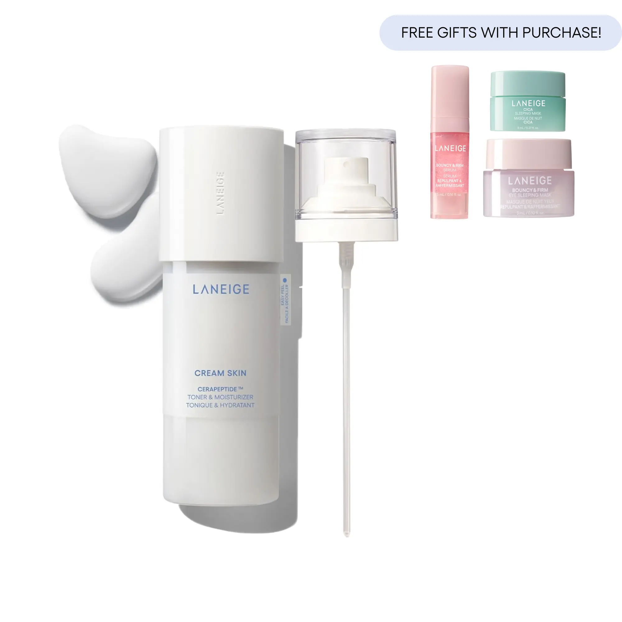 This Cream Skin Toner + Mist Pump Duo includes Cream Skin Toner & Moisturizer with a pump for easier use!