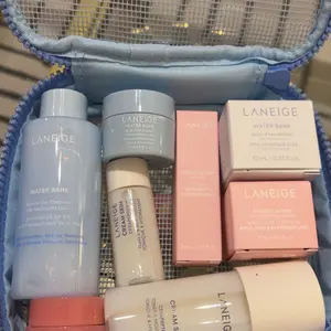 The best of Laneige in one gift set for deeply hydrated skin and soft, nourished lips. The routine features Water Bank Gentle Gel Cleanser, Cream Skin Toner & Moisturizer, Water Bank Cream Moisturizer, & Lip Sleeping Mask Berry.