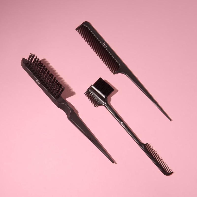 Section, smooth, and elevate your style with this three-piece styling kit designed to give you total control to master any look. Whether you're creating sleek, frizz-free finishes or boosting volume with a smooth, polished top layer, this set helps you achieve it all. Featuring a precision pin tail comb for parting and backcombing, a double-sided edge brush for shaping baby hairs and refining detail work, and a firm nylon bristle brush to tame flyaways without flattening your look. This kit is your go-to for clean, professional-level results at home.