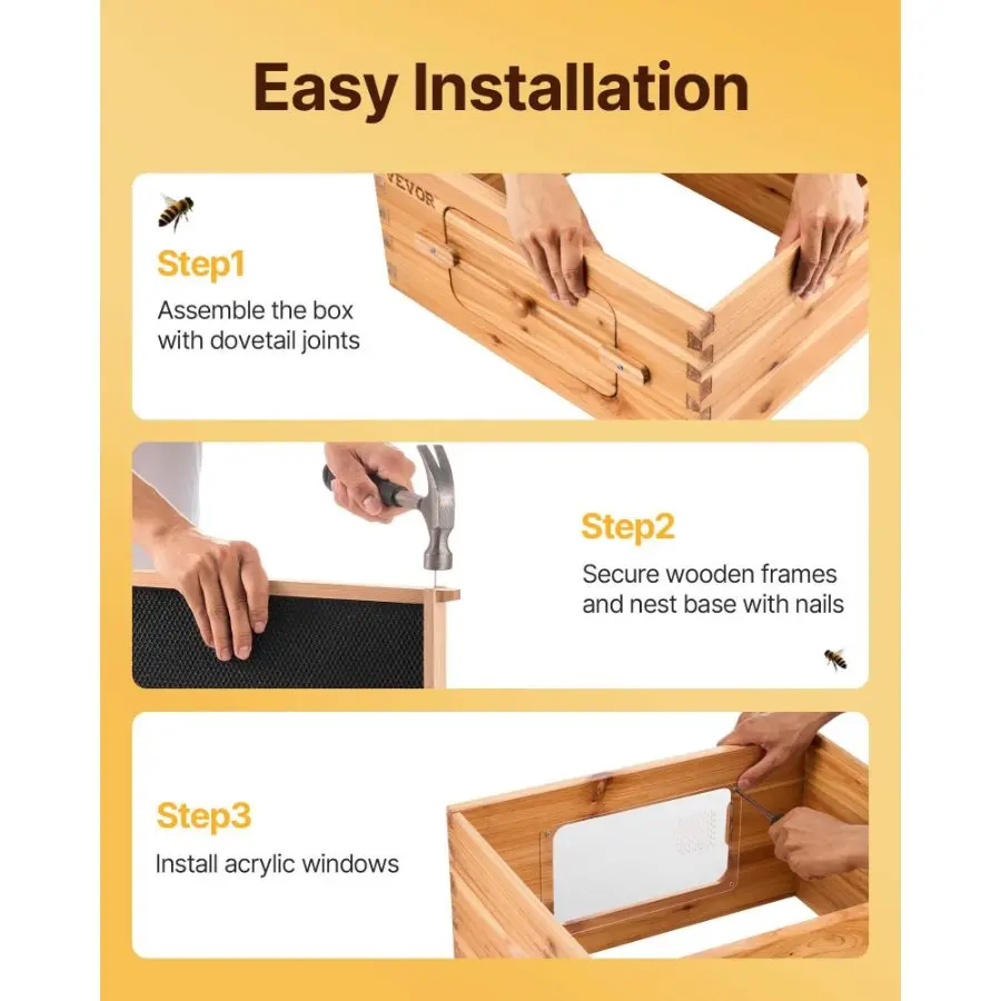 Bee Hive Deep Box Starter Kit, Beeswax Coated Natural Fir Wood, Langstroth Beehive Kit with 10 Frames and Foundations, Transparent Acrylic Bee Windows for Beginners and Pro BeekeepersBee Hive Deep Box Starter Kit, Beeswax Coated Natural Fir Wood, Langstroth Beehive Kit with 10 Frames and Foundations, Transparent Acrylic Bee Windows for Beginners and Pro Beekeepers