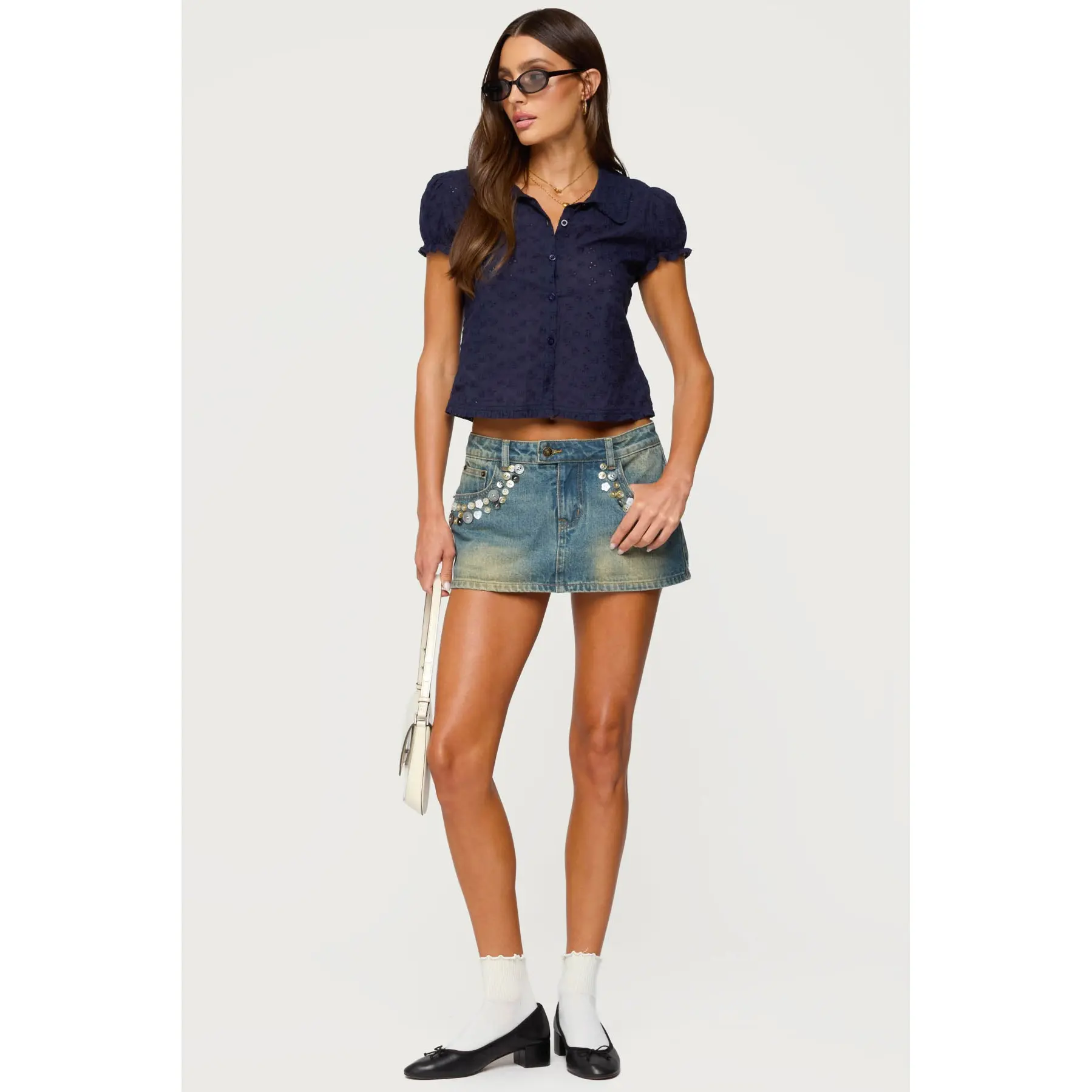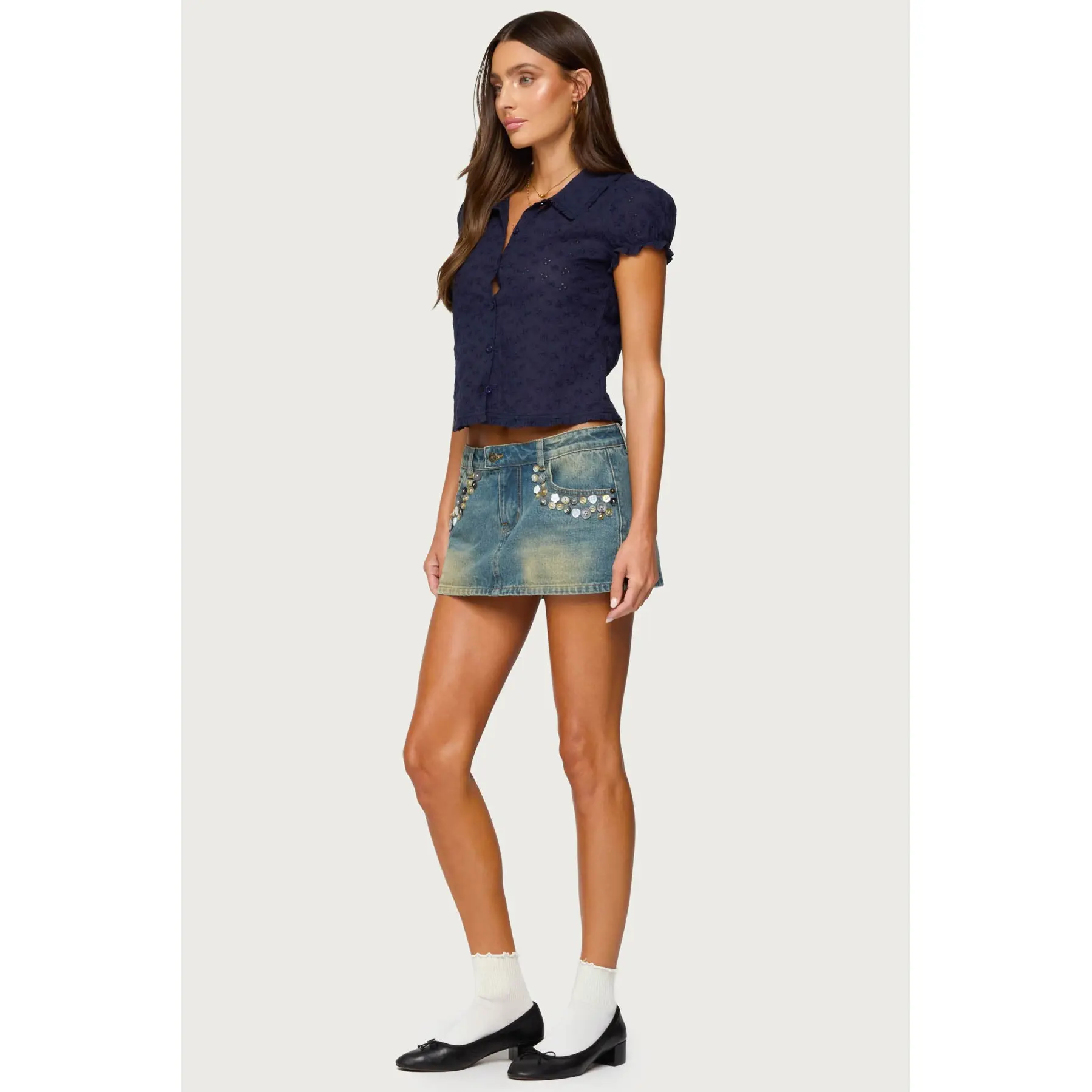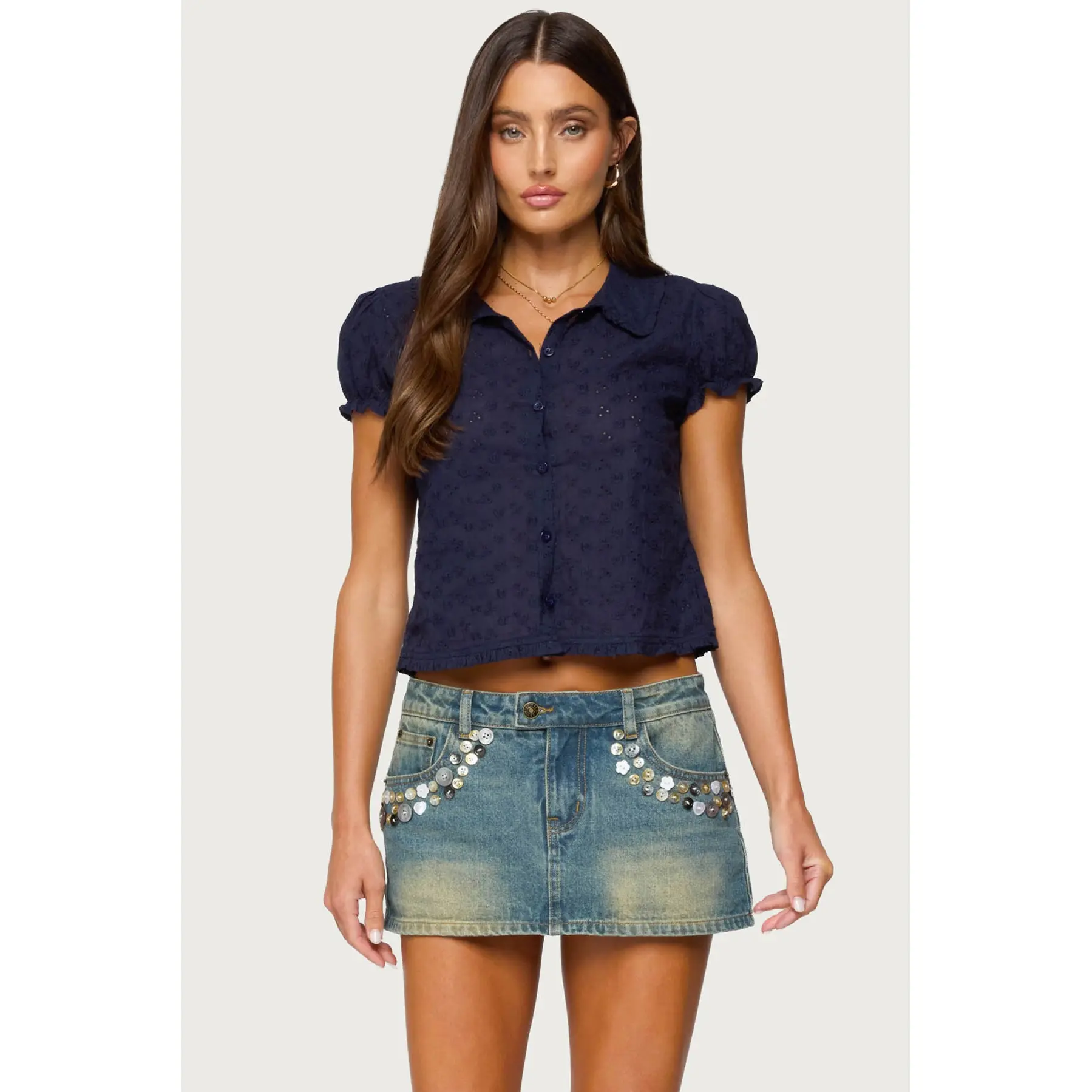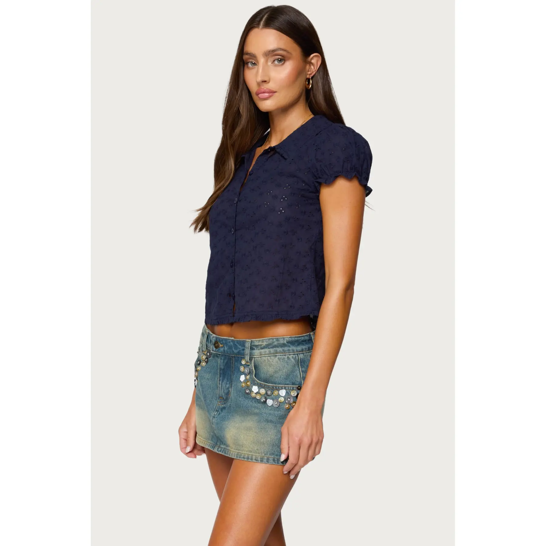 5. Lanie Eyelet Tailored Button Up Shirt