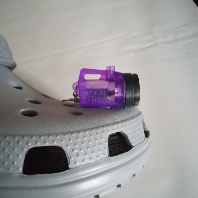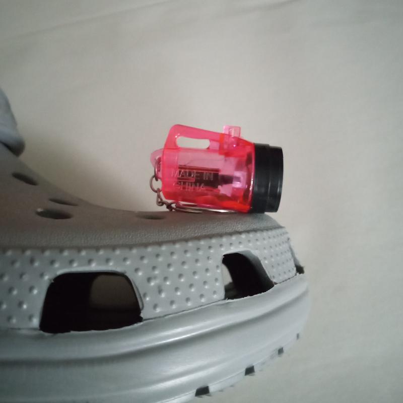 Enhance your Shoes with our Lantern Flashlight Charm. Available in 6 fun colors, this charm also includes a keychain and batteries for immediate use. Illuminate your path easily and stylishly with this functional and fashionable accessory.