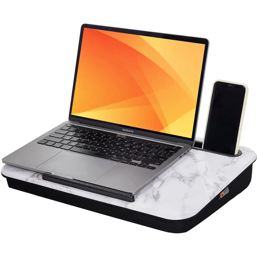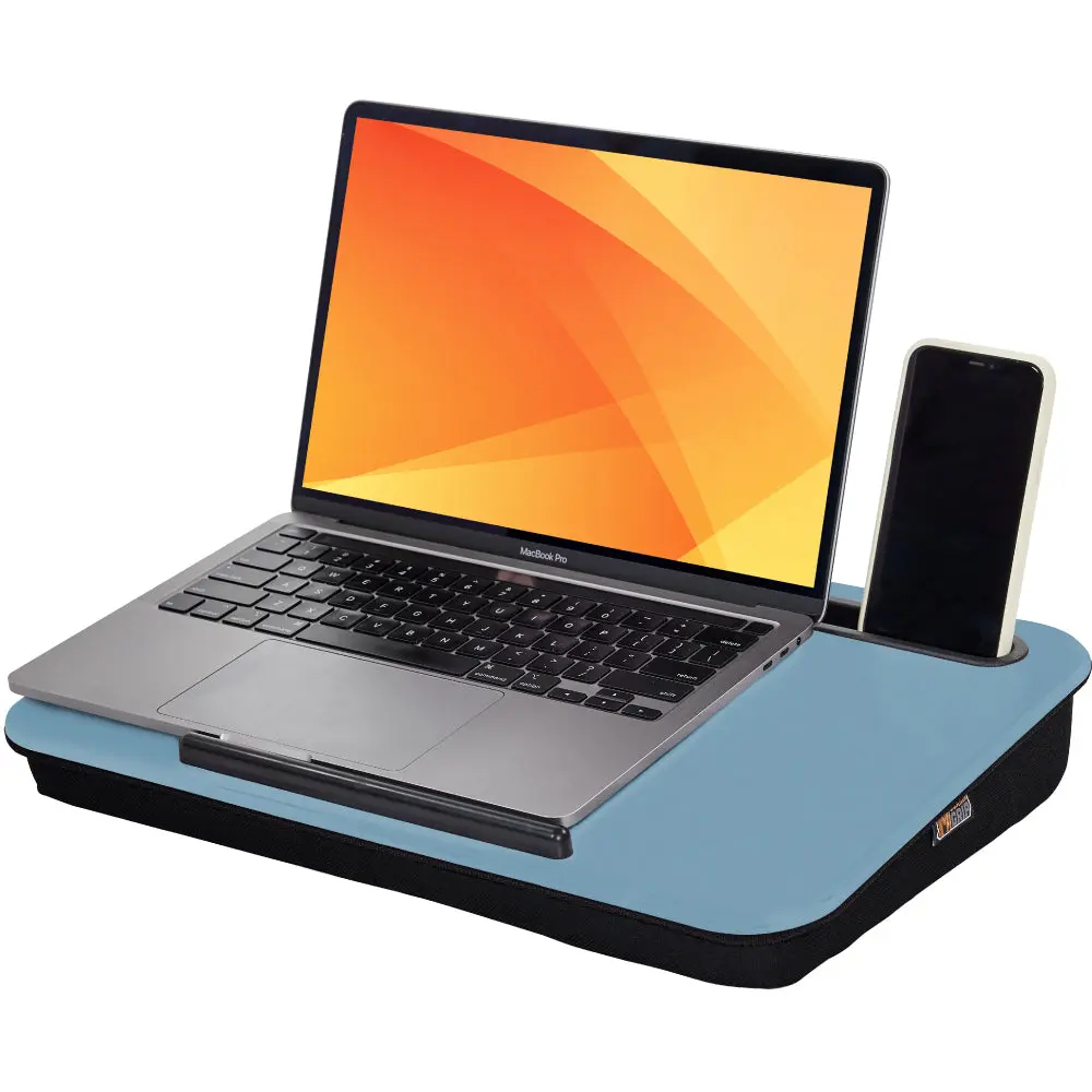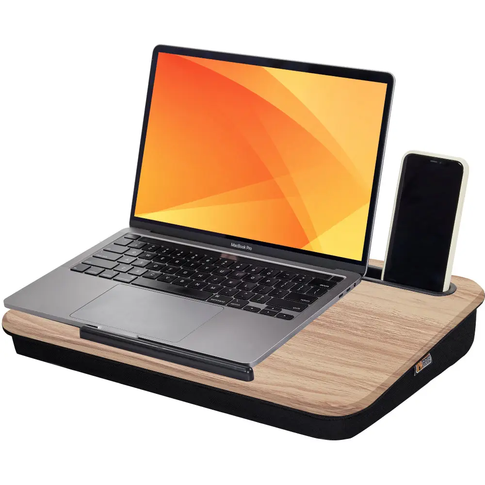 DEVICE SLOT: Easily see your phone while you work; lap desk features a 7.5 inch device slot that fits most cellphones and small tablets, so you can keep all your devices within arms reach while you work