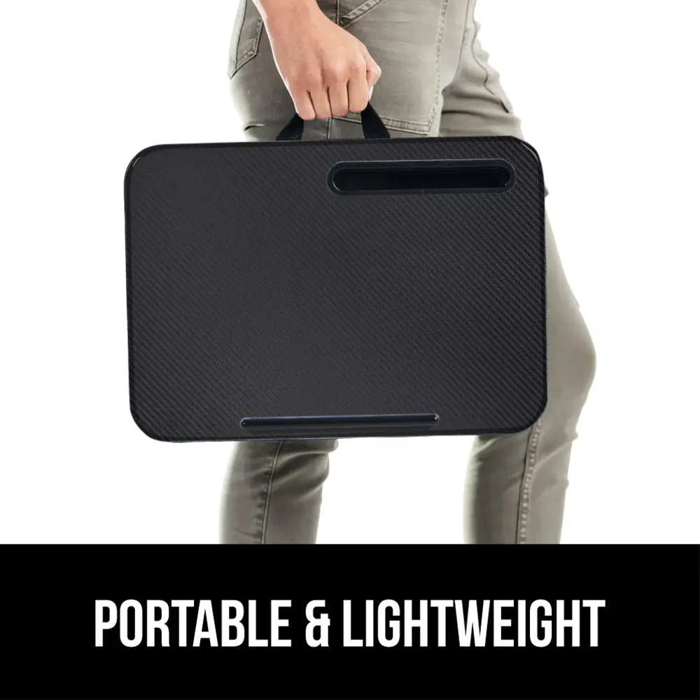 LAPTOPS UP TO 15 INCHES: Desk measures 16.5 inches x 11.8 inches and fits 15 inch laptops; lightweight and portable desk features a convenient carry top handle and is easy to take anywhere