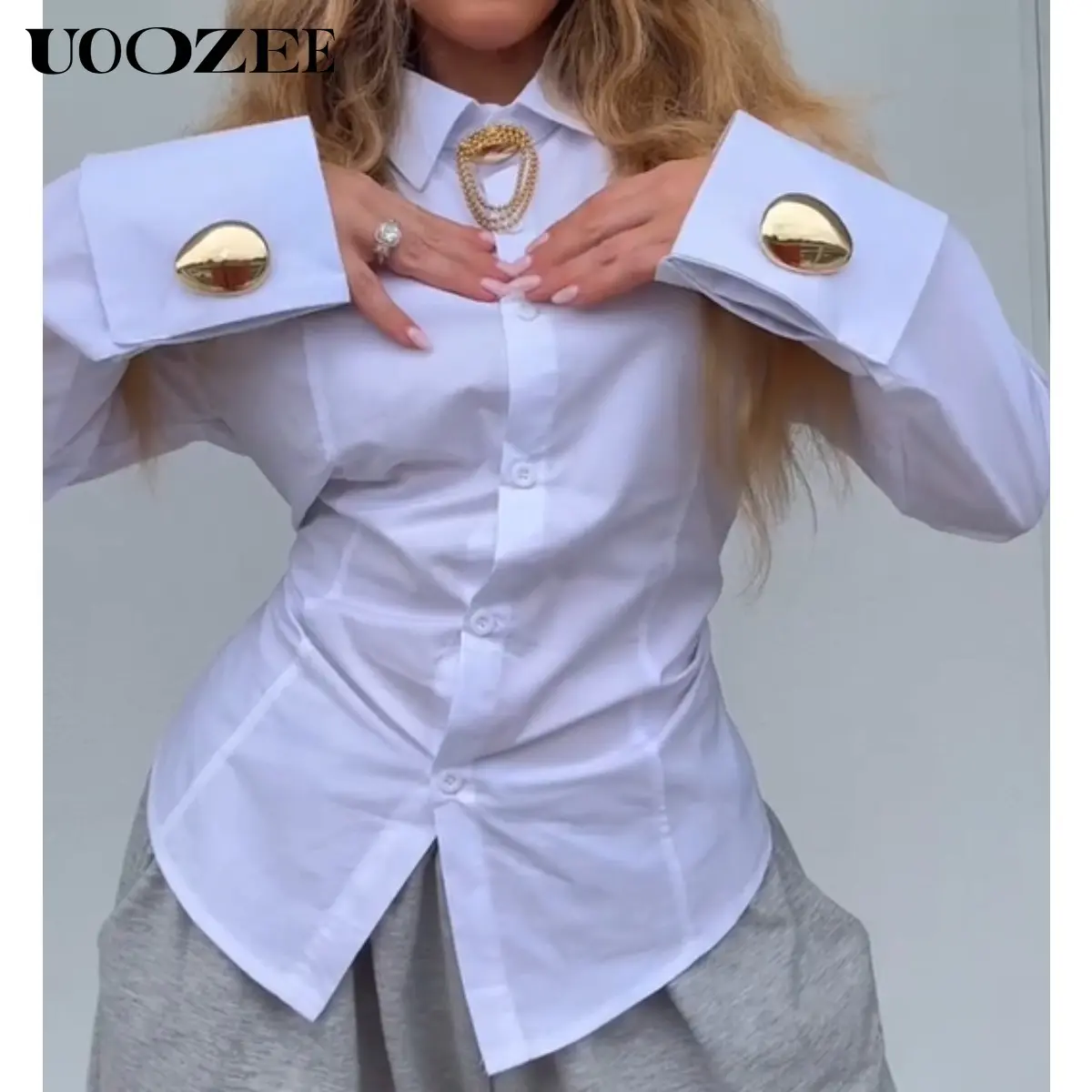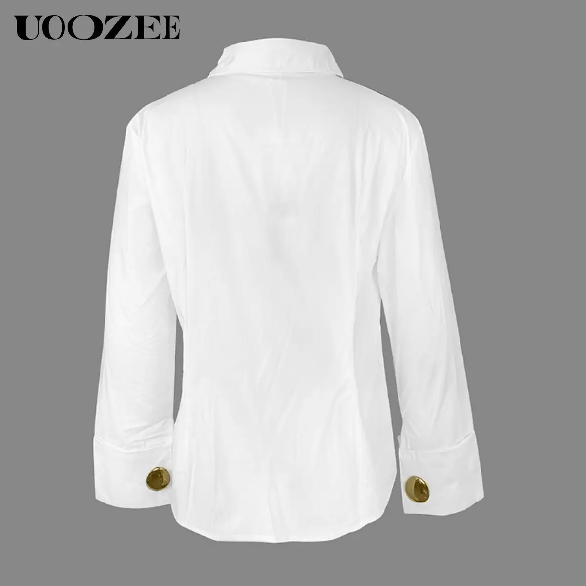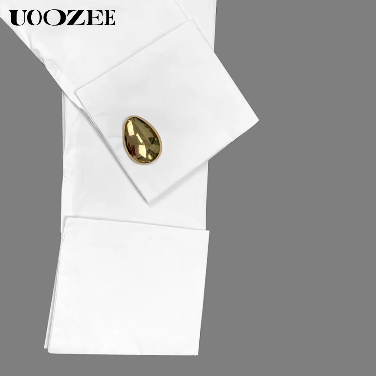 Classic white blouse that every woman should own and the cufflinks are stunning gold with big cuffs. I’m in love with this blouse.