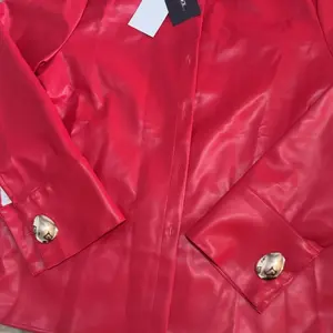 en la foto viene el rojo más oscuro, como color vino, las mangas al final no se doblan como en la foto, el tiempo para regresar el producto es muy rápido y no pude devolver la blusa, trabajo mucho y por eso compro en línea, estaba emocionada por la compra. 🤒 parece más una chaqueta que una blusa.