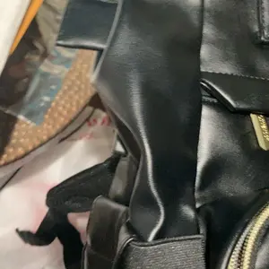 Material: I'm not sure if it's leather or pleather but the bag has a soft feel to it and has a wonderful leather smell.