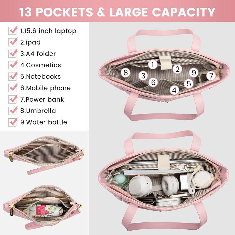 LOVEVOOK Laptop Bag, Women's Quilted Shoulder Bag, Large Capacity Tote with Small Pouch, Stylish Briefcase Suitable for Nurses, Teachers, Professional Women