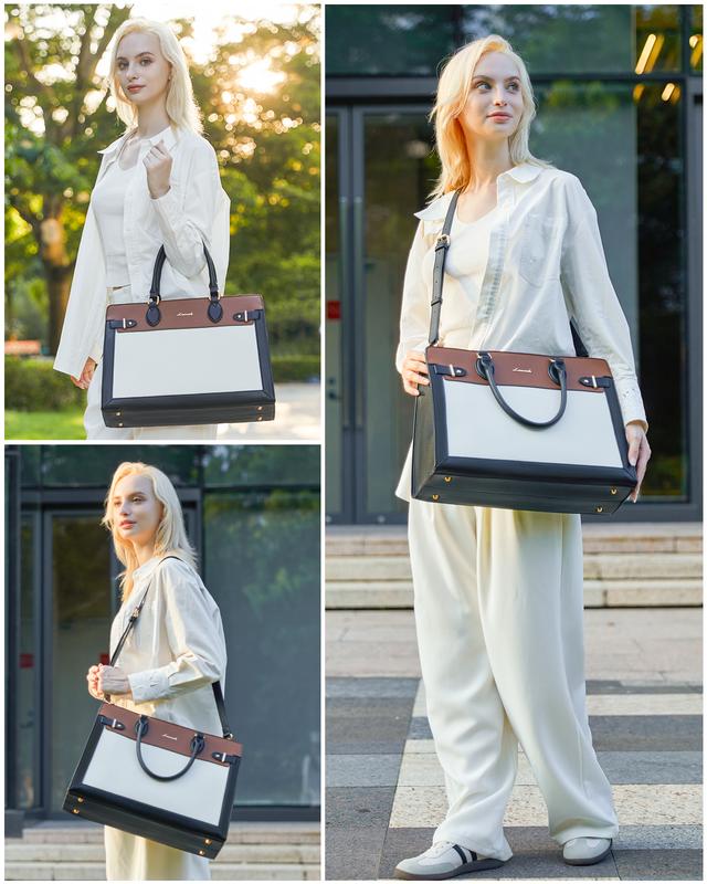 Love this bag!! It fits literally everything I need. Laptop, 40oz water bottle, padfolio, snacks, pens, folders the perfect business women bag!! BOSS LADY!