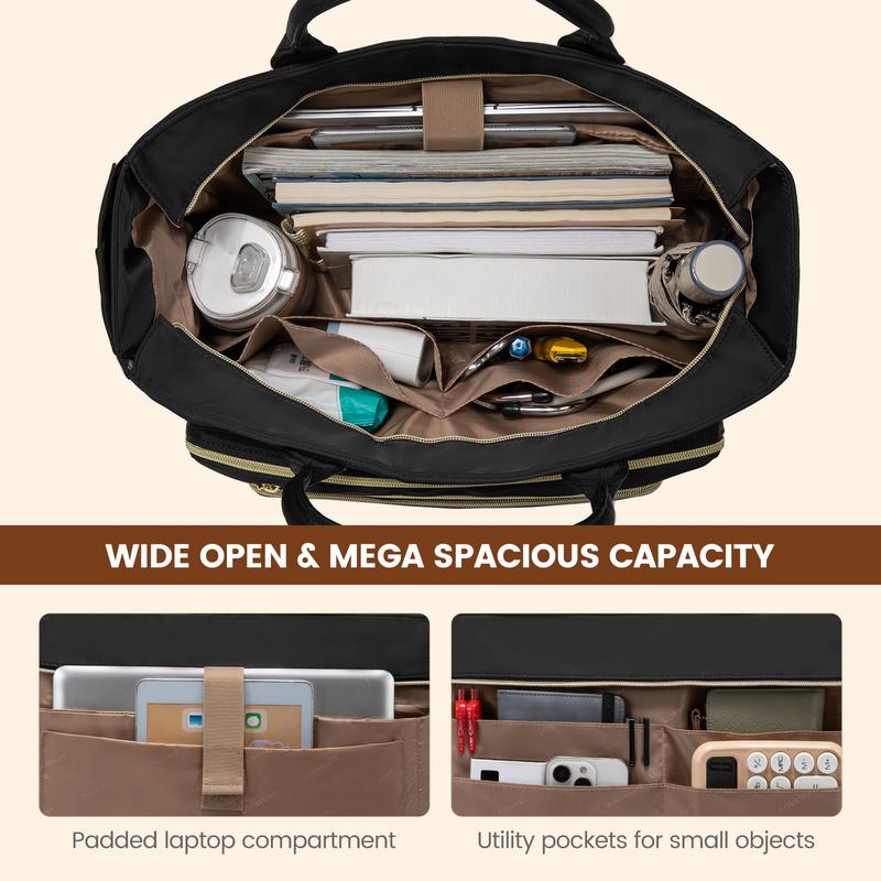 ·Ample Storage & Padded Laptop Compartment: this laptop bag features a padded laptop sleeve for excellent impact protection, ideal for work, business, travel, or everyday use. The spacious main compartment easily accommodates books, folders, and more, making it versatile as a teacher bag or nurse bag. Perfect for new parents as a diaper bag, it organizes baby essentials like clothes, diapers, and bottles efficiently.