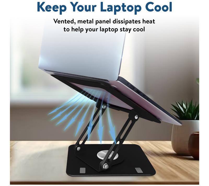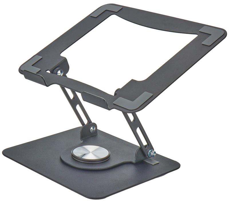 Compute more comfortably with this adjustable swivel laptop stand. Easily raise or tilt to accommodate your seated or standing position, or rotate your screen to share with others. The stand's vented panel helps keep your computer cool. From Uncaged Ergonomics.