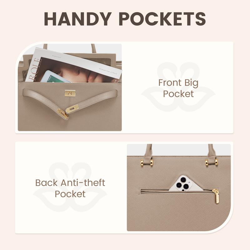 【CLASSIC & STYLISH】: Crafted from premium cross-grain leather, this exquisite tote bag for women features a classic turn-lock closure design, seamlessly marrying sophistication with a modern flair. Ideal for both leisure and business looks, it effortlessly bridges the gap between classic elegance and contemporary style.