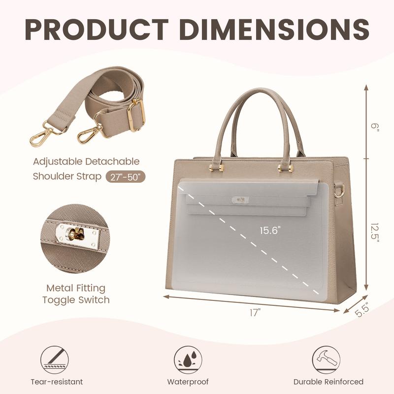 【GIFT-WORTHY ELEGANT TOTE PURSE】: Dimensions: 17"" L x 5.5"" W x 12.5"" H, net weight of 3 lbs this laptop tote bag's elegance and multifunctionality make it the ideal companion for any setting. Its chic design also renders it a perfect gift for anniversaries, birthdays, Mother’s Day, Valentine’s Day, and Christmas.