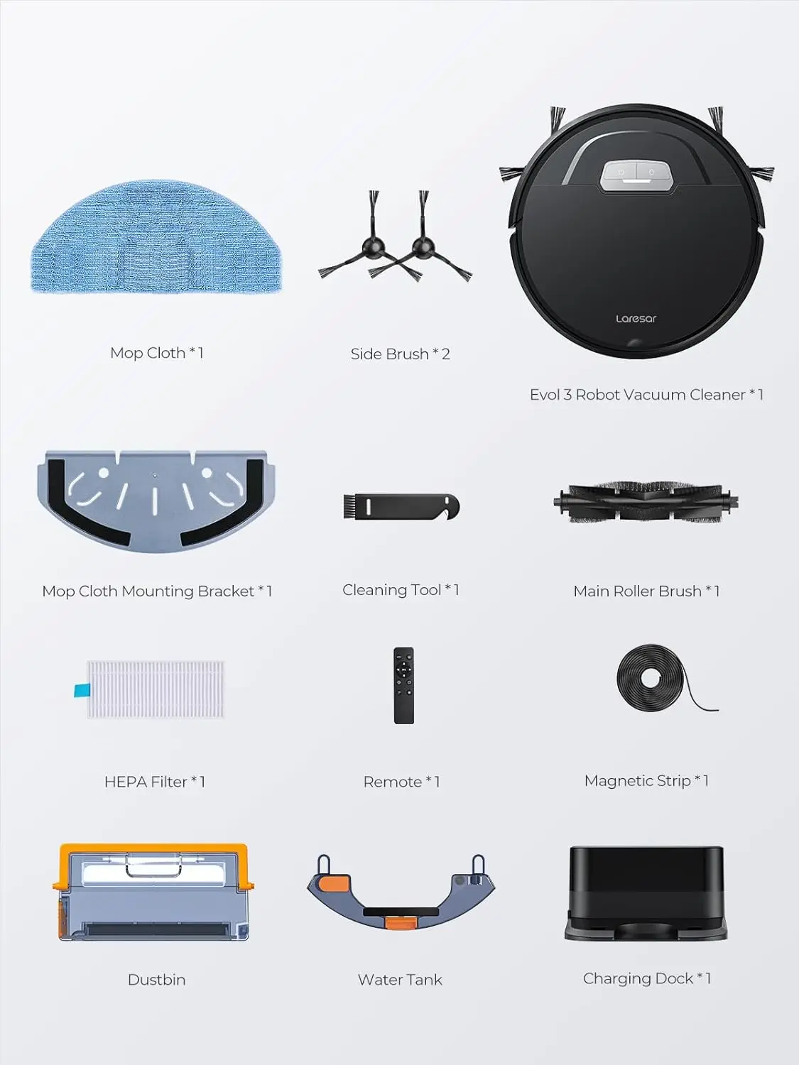 【3” Ultra Slim】With a body of only 3 inches, Evol 3 Robot Mop and Vacuum is thiner and lighter. This allows it to move freely around your house, getting under furniture such as sofas and cabinets and cleaning out the deepest debris!
