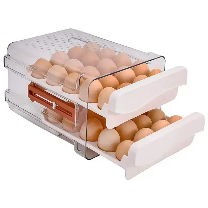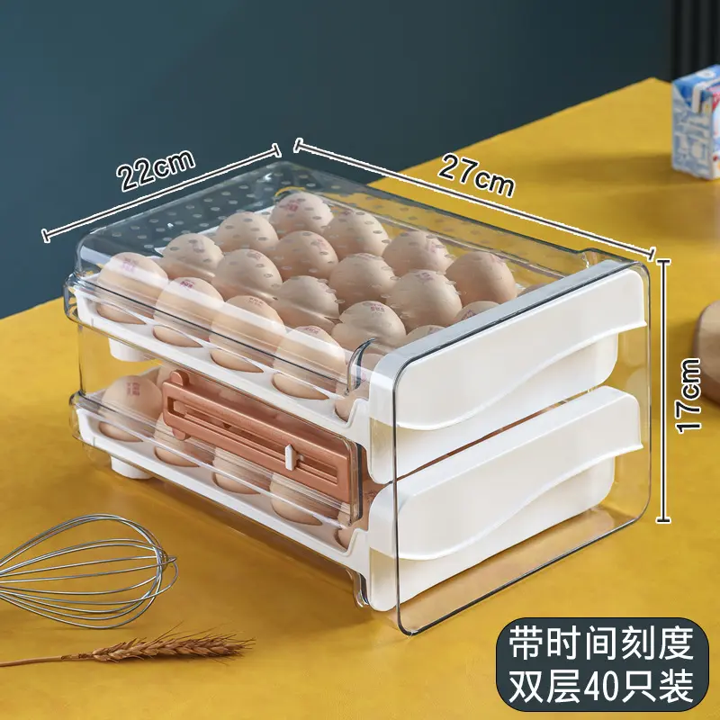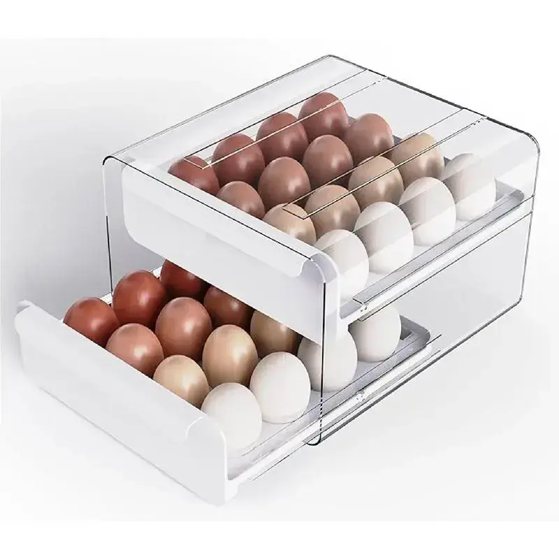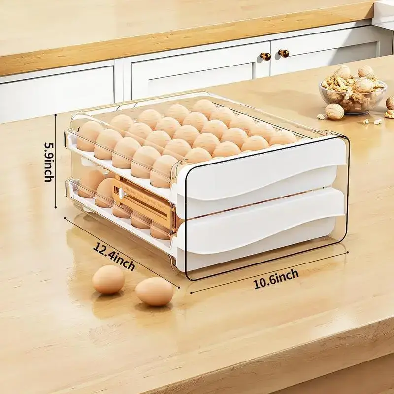 Contains Batteries or Cells?:NoneDangerous Goods or Hazardous Materials:NoMaterial:PlasticFeature:Heat ResistantEgg Utensil Type:Egg HolderQuantity Per Pack:1 Large Capacity 2-Layer Egg Tray: Efficient, Durable, and Convenient Large Capacity **LARGE CAPACITY**: The 2-layer egg tray measures 10.6''L x 12.4''W x 5.9''H, providing a 60-grid capacity.Each layer can hold 30 eggs, accommodating a total of 60 eggs, making it spacious enough for daily egg storage. Time Scale Function **TIME SCALE FUNCTION**: The egg dispenser features a time scale on the left side, which helps you keep track of the storage dates for your eggs, ensuring they are used in a timely manner. Superior Material **SUPERIOR MATERIAL**: Made from food-grade, the egg storage container is high in transparency, allowing you to easily see the remaining eggs.It is BPA-free, ensuring it is and environmentally friendly. Stackable and Non-Slip Design **STACKABLE AND NON-SLIP DESIGN**: The egg holder comes with a lid and handles, making it easy to carry and move.The lidded design allows you to stack other items over or under it without compromising the safety of your eggs. Easy to Clean **EASY TO CLEAN**: The plastic material is easy to clean and does not absorb stains or odors, ensuring the egg tray organizers stay looking and smelling fresh for a long time. Product Benefits - **Ample Storage**: Holds up to 60 eggs, ideal for daily storage. - **Date Tracking**: Time scale function for keeping track of egg storage dates. - **High-Quality Material**: Made from food-grade, BPA-free PET for safety and transparency. - **Space-Saving Design**: Stackable and non-slip with a lid for secure storage. - **Easy Maintenance**: Easy to clean, ensuring the tray stays fresh and odor-free. Enhance your egg storage with this large capacity, durable, and convenient 2-layer egg tray, designed to keep your eggs safe, organized, and fresh.for efficient daily use in any kitchen. 1.Large capacity egg tray 2.2-layer egg storage container 3.Egg dispenser with time scale 4.BPA-free egg holder 5.Stackable egg organizer 6.Transparent egg tray 7.Food-grade PET egg storage 8.Non-slip egg holder 9.Easy-to-clean egg tray 10. Egg storage for refrigerator