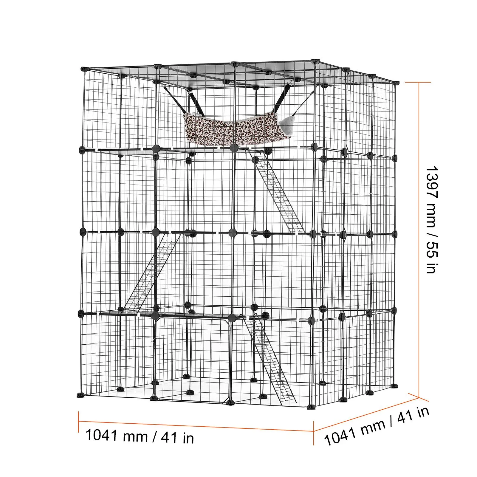 • Extra Large Cat Cage: Sized at 41 x 14 x 55", this cat enclosure renders ample space for your cats to play and rest. Features 4-tier and 4 front doors for entering, playing and resting. For intimate contact with your cat, you can use this cage indoors, outdoors, or on the patio.
